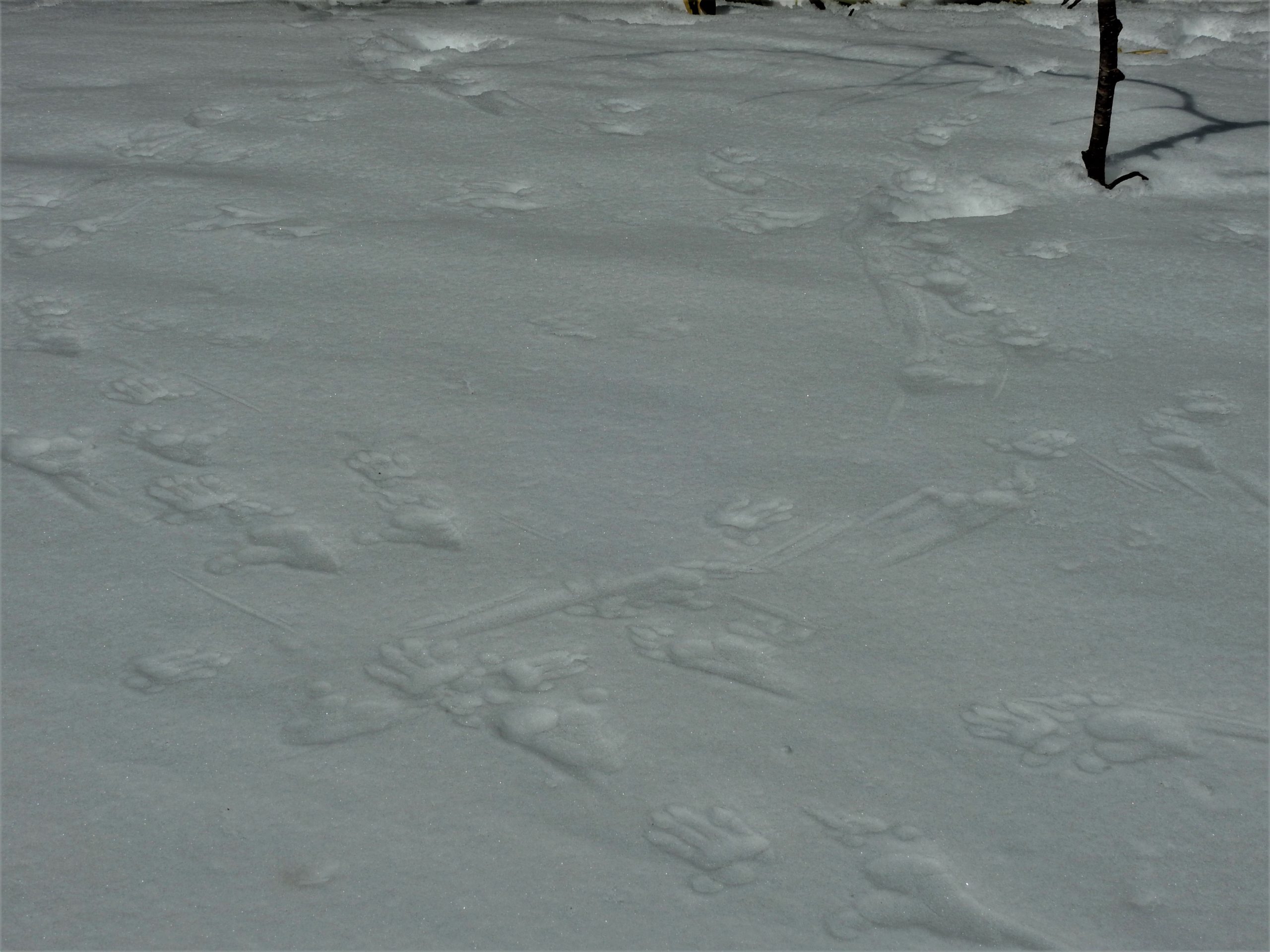 まるで雪の中を楽しんでいるかのような彼らの足跡を見つけながら、石楠花平を登ります。