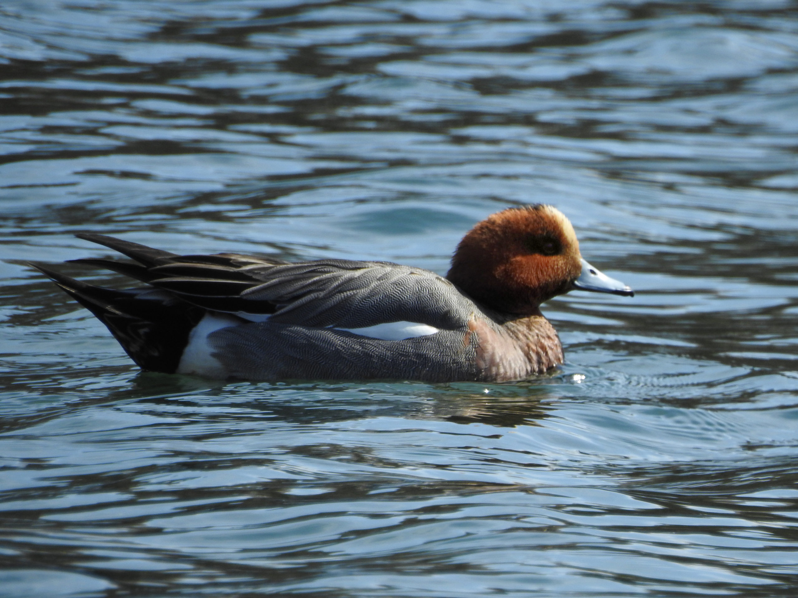 「ピュー!」と元気な鳴き声のヒドリガモや