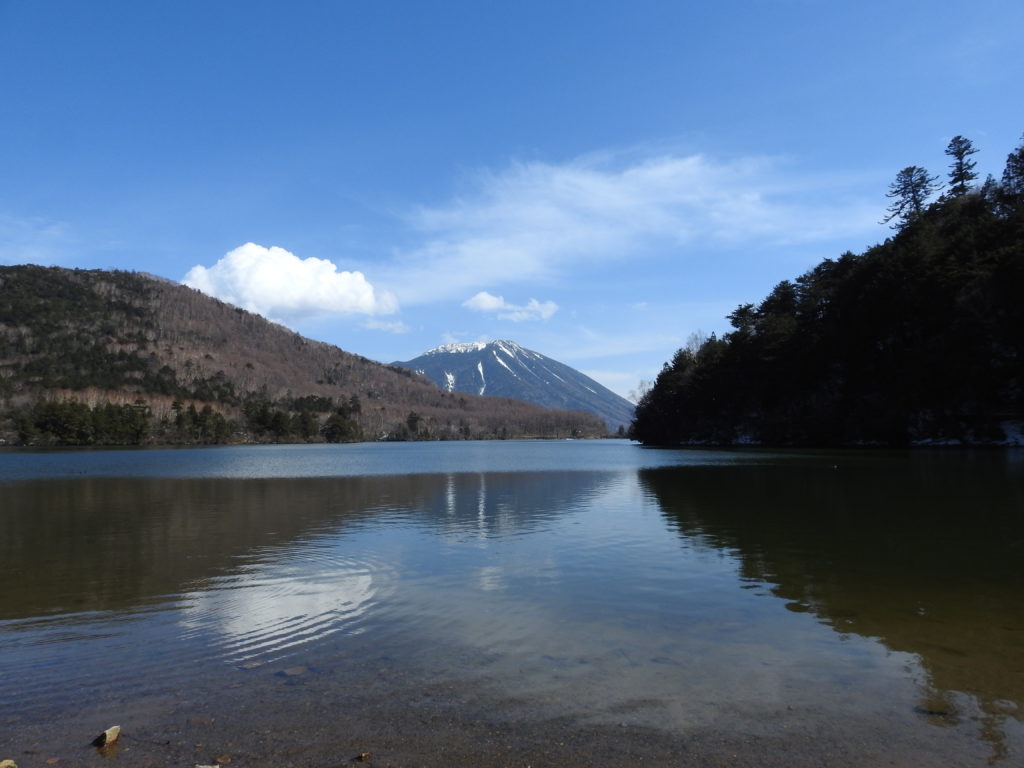 湖面にうっすらと張っていた氷もすっかり解けた湯ノ湖。