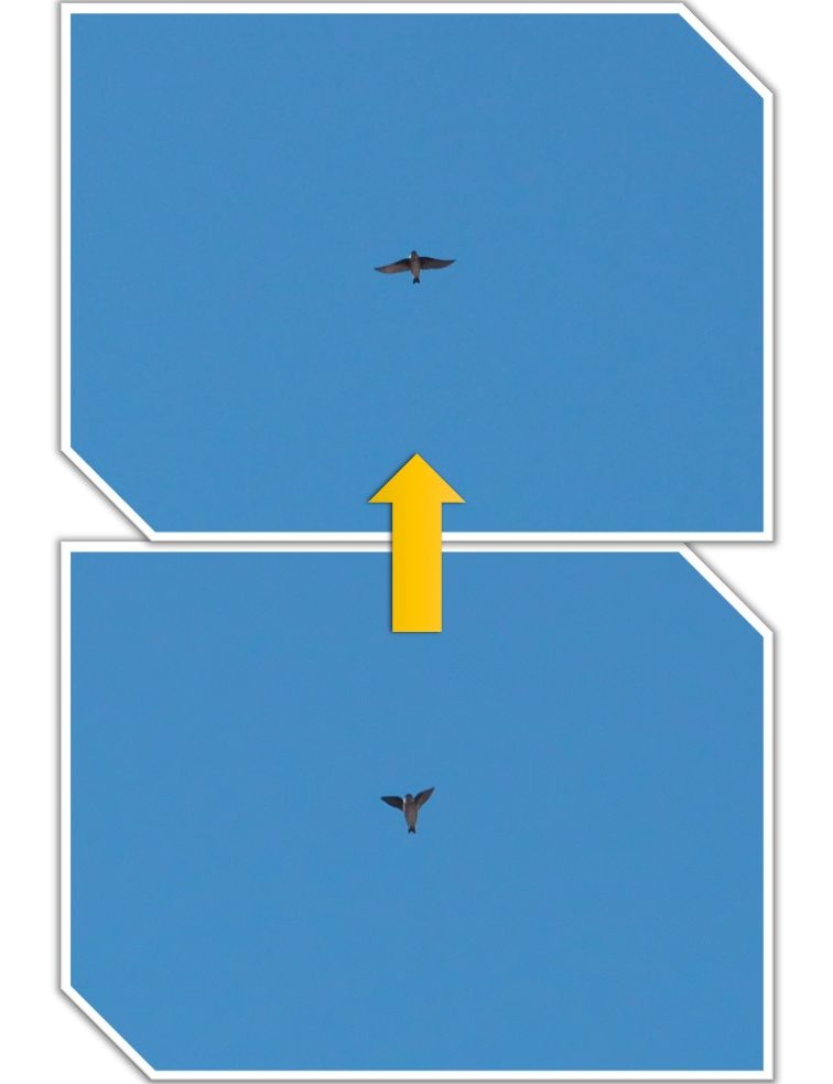 頭上を飛び回るイワツバメの羽ばたいている姿を連続で撮れましたが、シルエットを見ると意外とずんぐりしていてカワイイことに気づきました♪