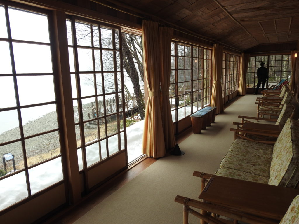 また各国ゆかりの飲み物が楽しめるカフェや、ソファに腰かけて、窓から中禅寺湖の絶景をゆったりと眺めることができるスペースも用意されています。