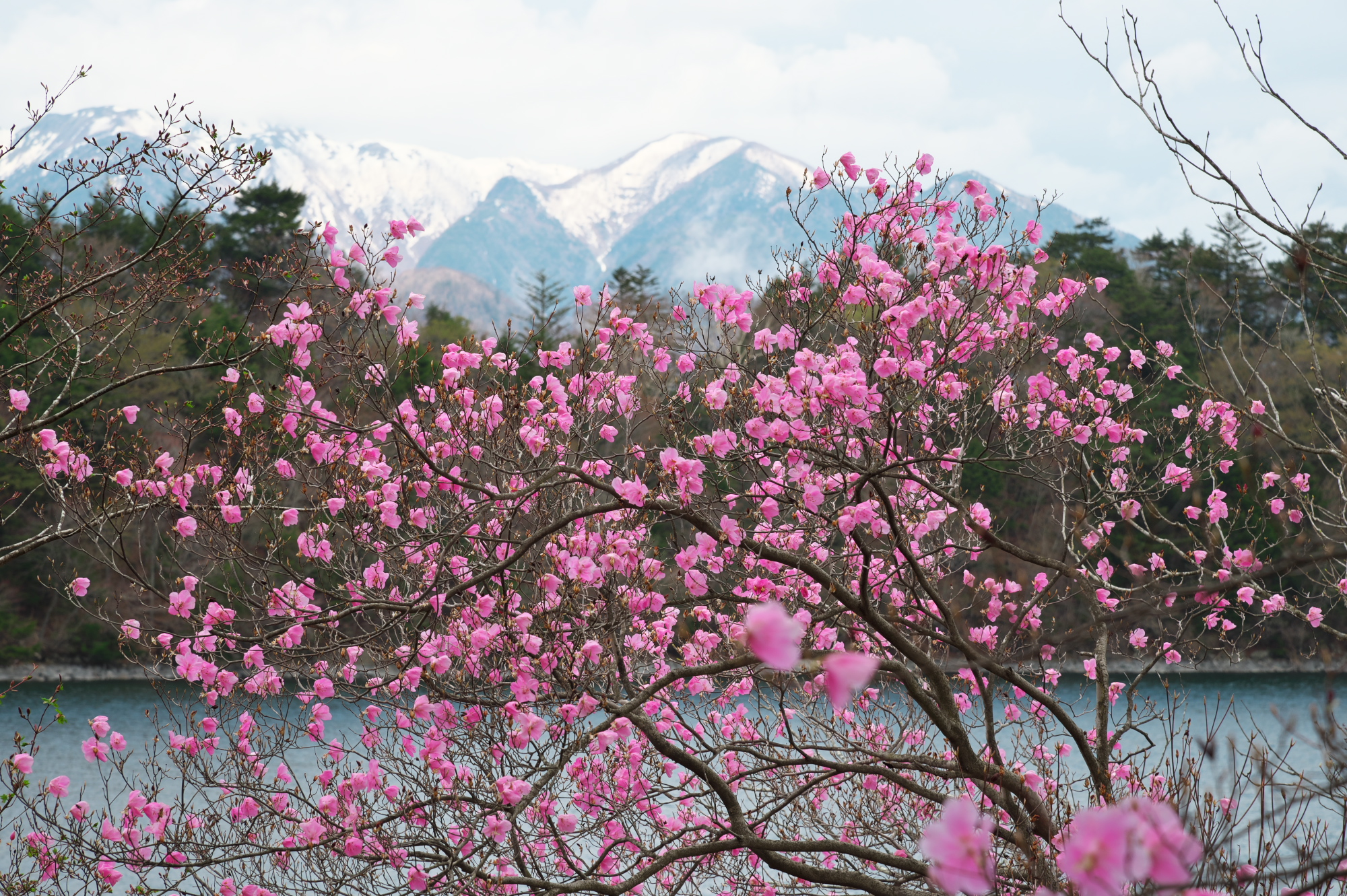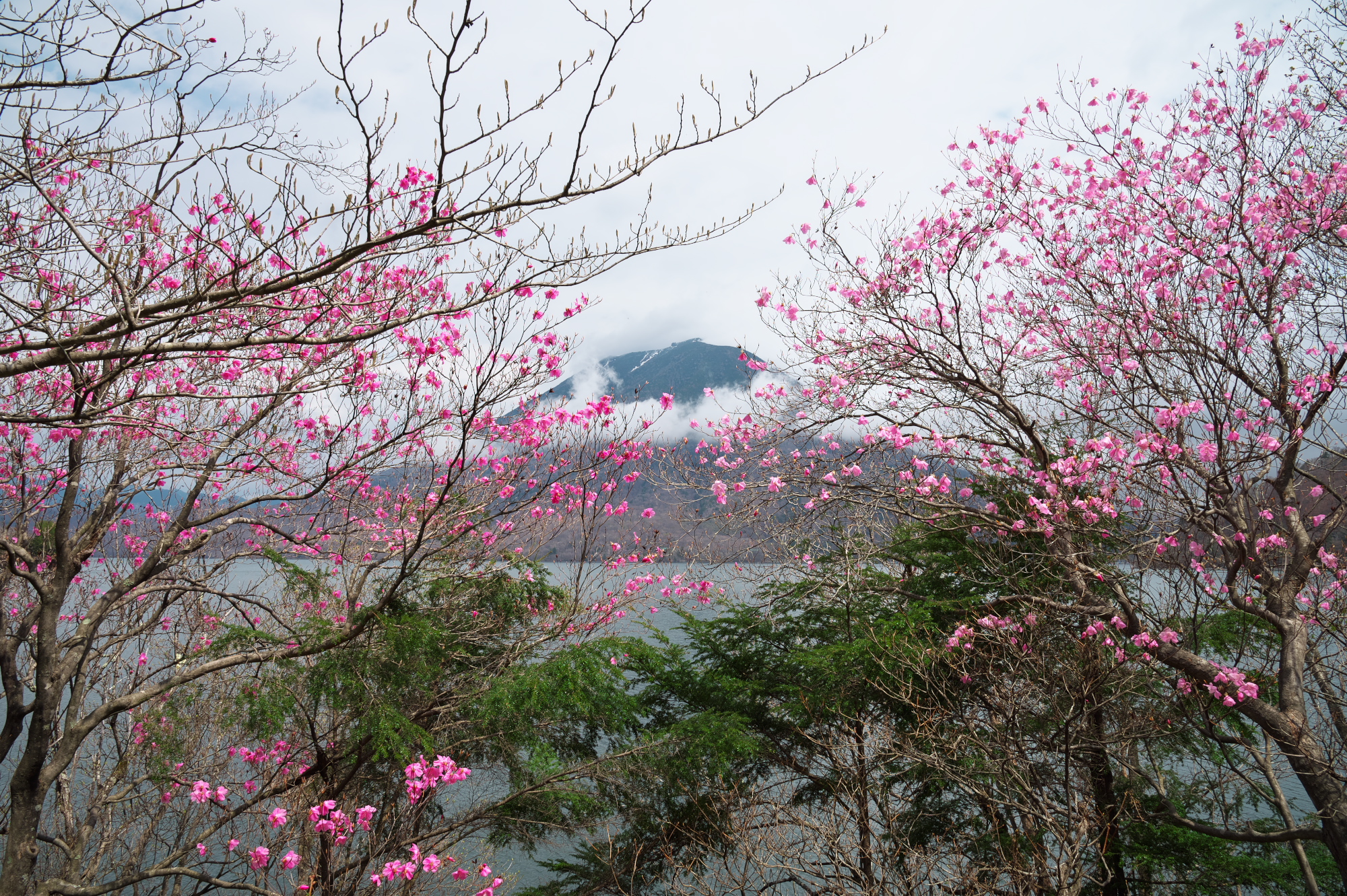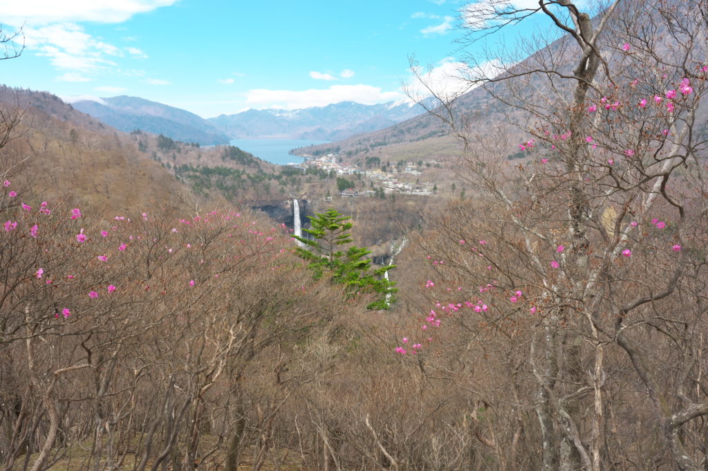 標高約1400mのアカヤシオと中禅寺湖を一緒に見られるポイント。
