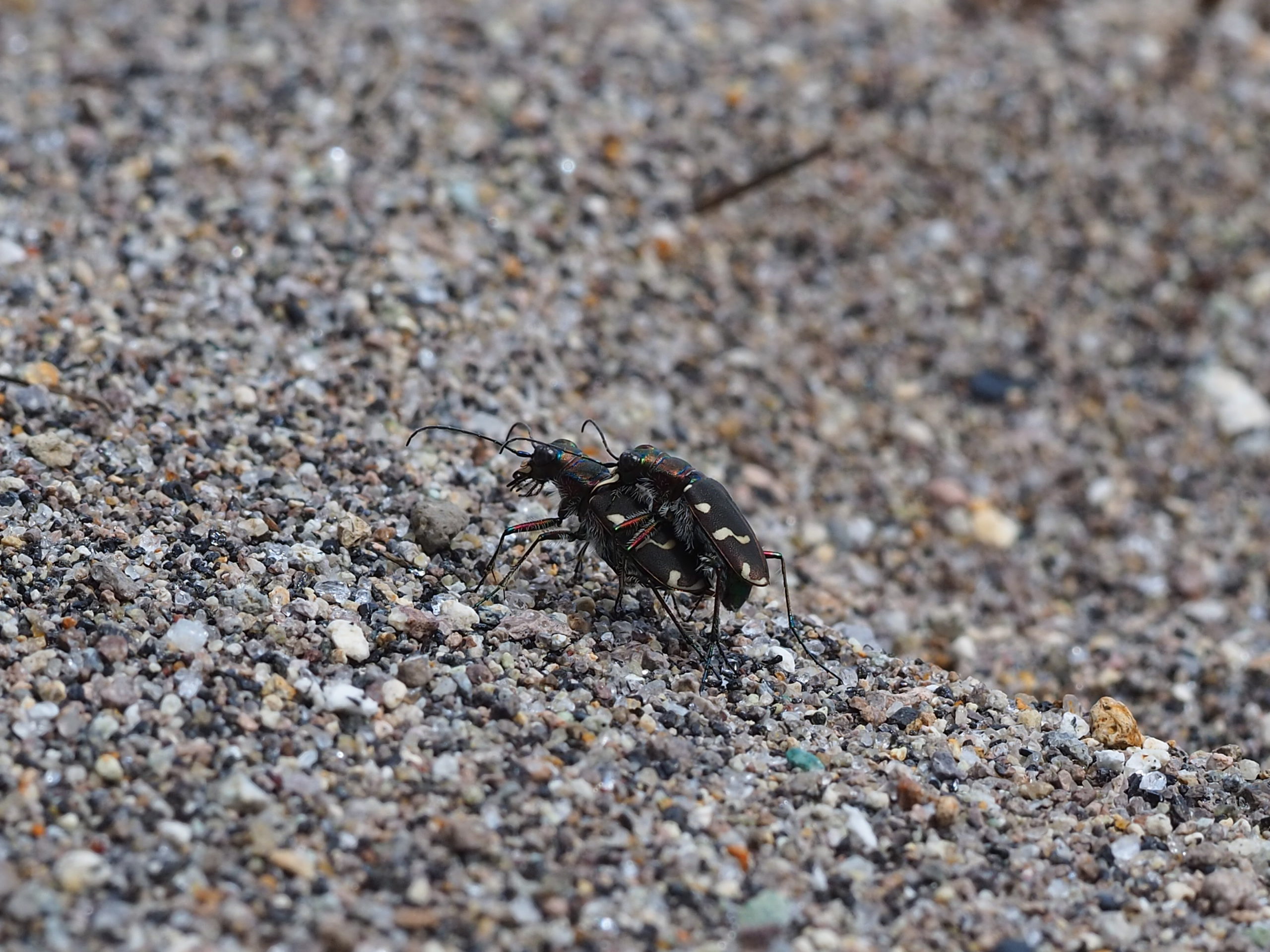 こちらは砂浜で活発に活動していたコニワハンミョウ(なんとカップルでした)こちらもよく見かける存在です。