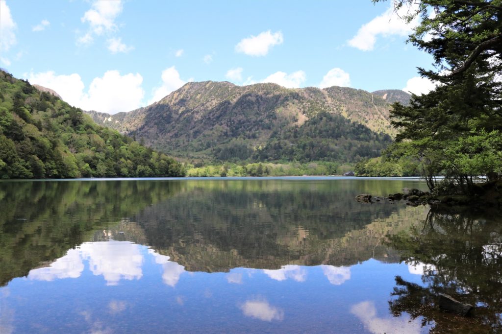 風が穏やかだったので鏡面がとても綺麗だった湯ノ湖。