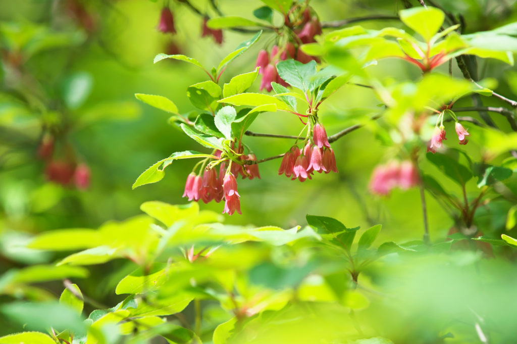 これは、ベニサラサドウダンという花。「ドウダン」を漢字で「満天星」と書きますが、それは中国語が由来のようで、小さな花がたくさん並ぶ様子を、夜空に広がる無数の星々に見立てて「満天星」という漢字が当てられているそうです。