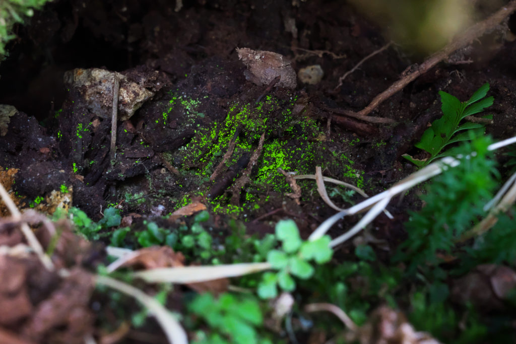 この「ヒカリゴケ」という名前からして自ら発光しそうですが、実はそうではないんです。