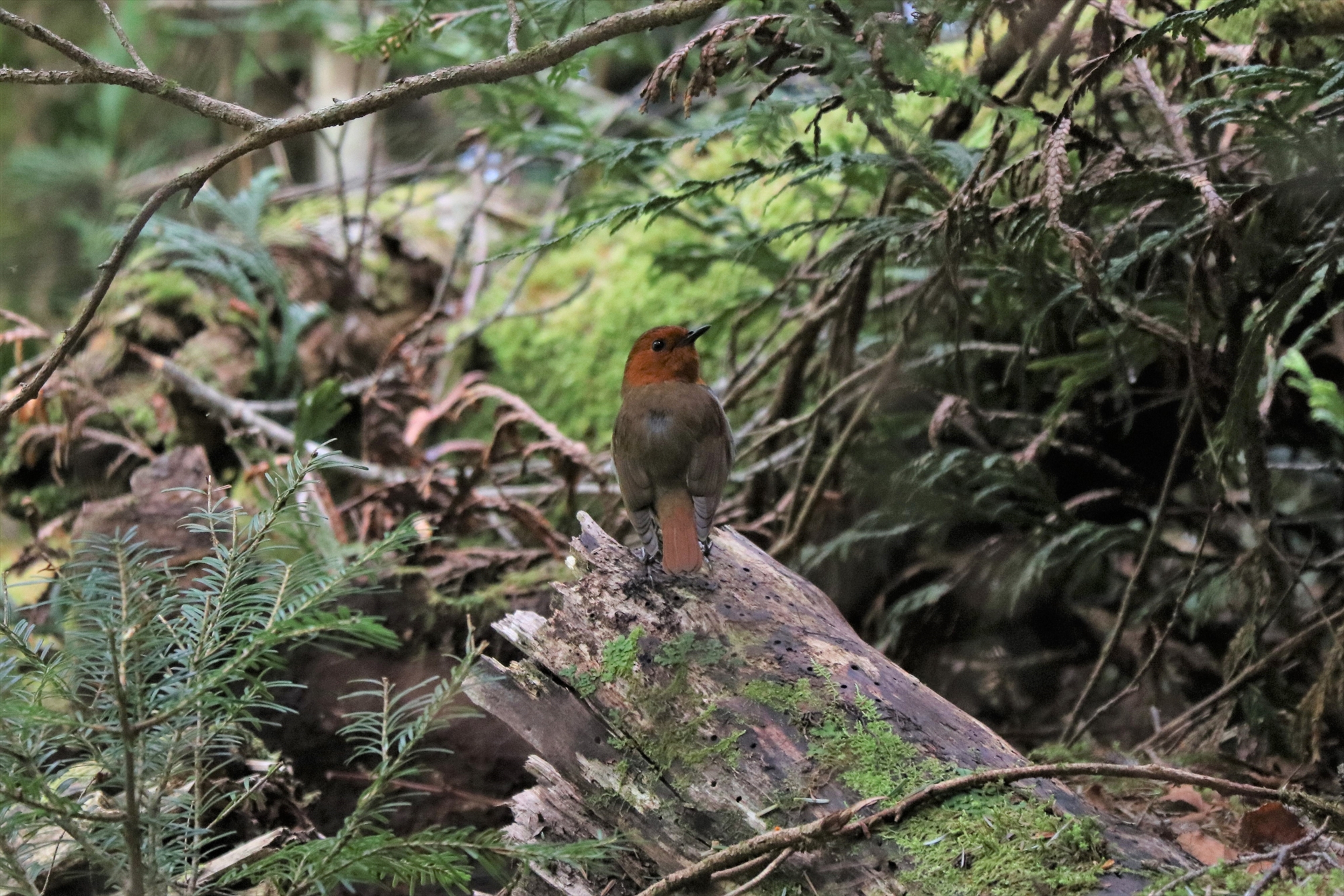 コマドリです!顔から背中と胸のあたりがオレンジ色の体長14センチほどの夏鳥です。毎年この時期になると切込・刈込湖周辺にやってきます。コマドリはその綺麗なさえずりから日本で最も鳴き声の美しい鳥として「日本三鳴鳥」(他の2羽はオオルリとウグイスです)にもなっています。