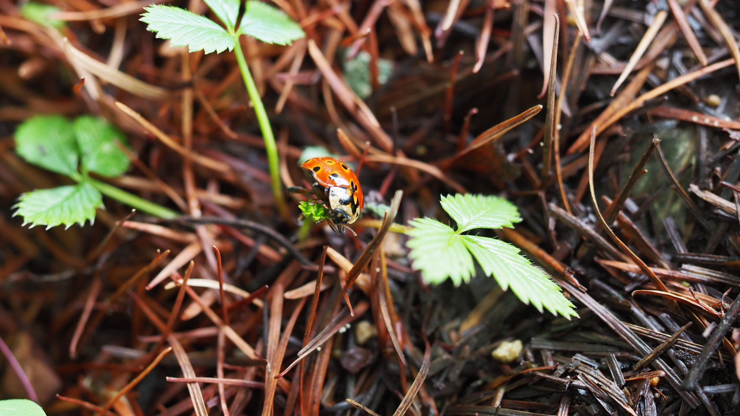 アカヤマアリのように面白い生態が分かっているものがいれば、未だに生態が未解明な虫も数多くいます。この日見つけたウンモンテントウはその一例。野外で食べるものが未だにはっきりしていないのです。奥日光でもわりあい見かけますが、食事中の個体を見たことはありません。アブラムシを食べるという話を聞いたこともありますが、アブラムシの多い場所でも見つかりません。