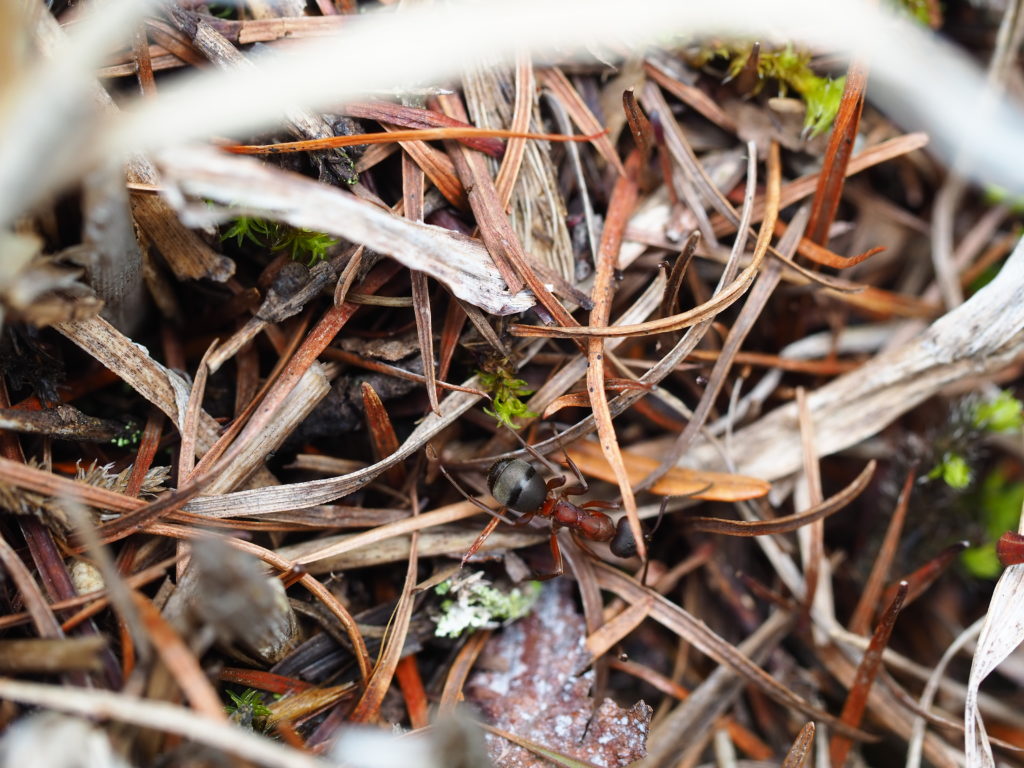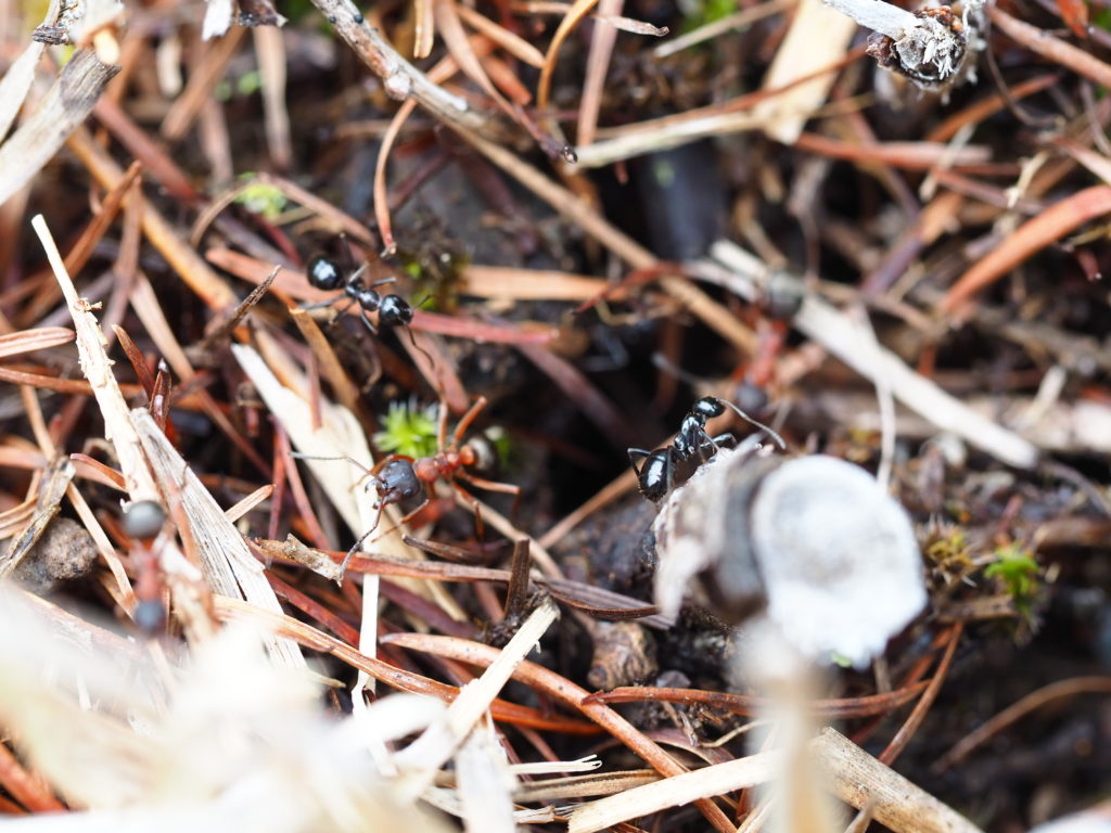 その一方で春から鳴き続けていたエゾハルゼミの声はめっきり少なくなり、季節の移り変わりを実感しながらあるアリの巣の元へ。