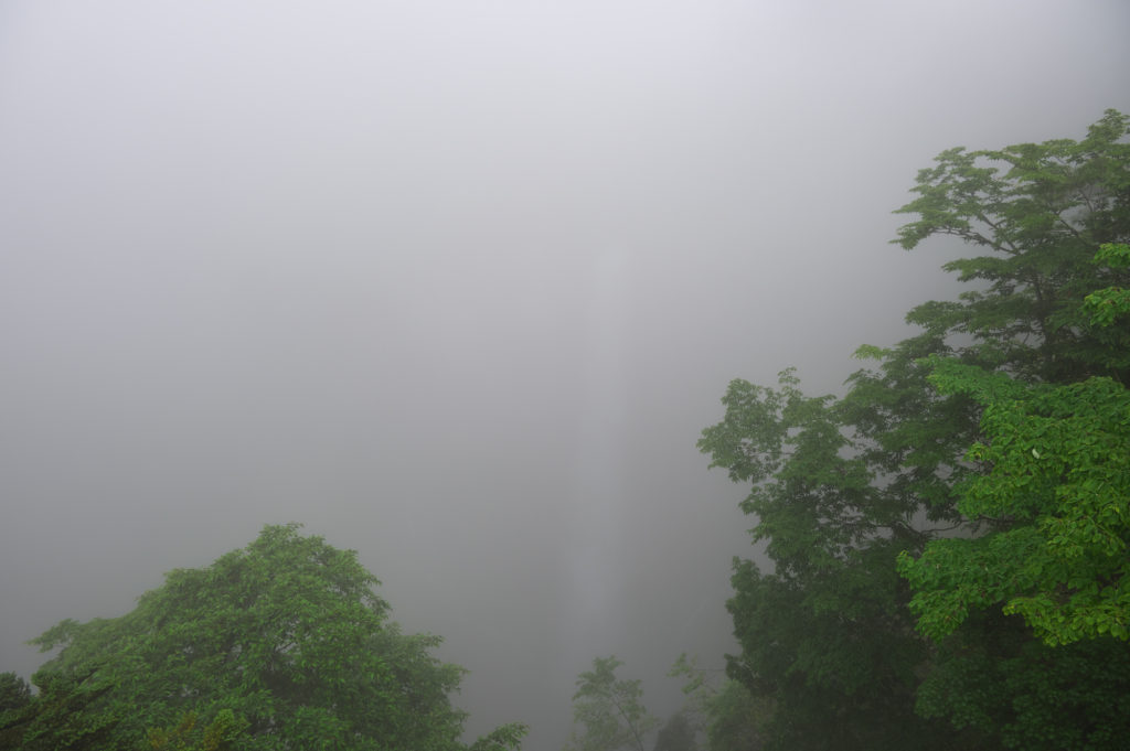 当日の天気は雨、濃い霧に包まれ、無料観瀑台からは滝の姿を確認することはできませんでした。