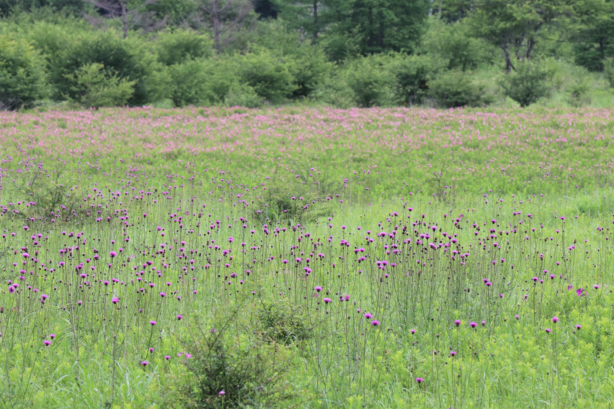 そして小田代原といえば「ノアザミ」も有名ですが、こちらも木道から少し離れた奥の方の群落が見頃を迎えていました。