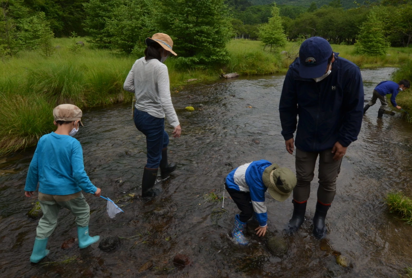 網ですくったり石をひっくり返したりして、トビケラの幼虫や小さなゲンゴロウ、オタマジャクシ等の水の中の生き物を観察できました。