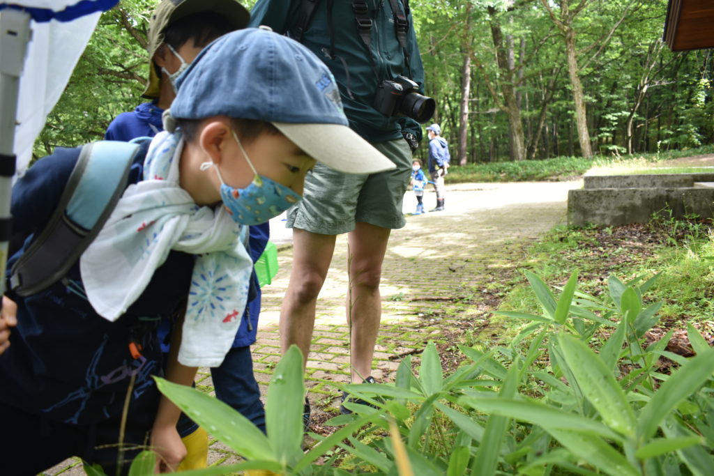 本日24日の「ワクワクドキドキ昆虫探検」は2班に分かれての活動となりました。少し雨が心配な空模様でしたが、最後まで降られることなく活動できました。