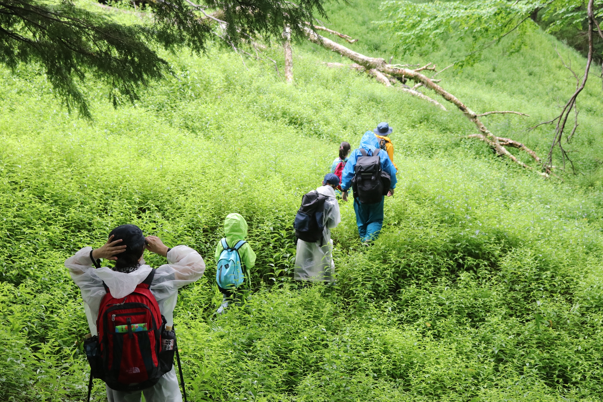 自然解説員と一緒に、道なき道をどんどん進みます。