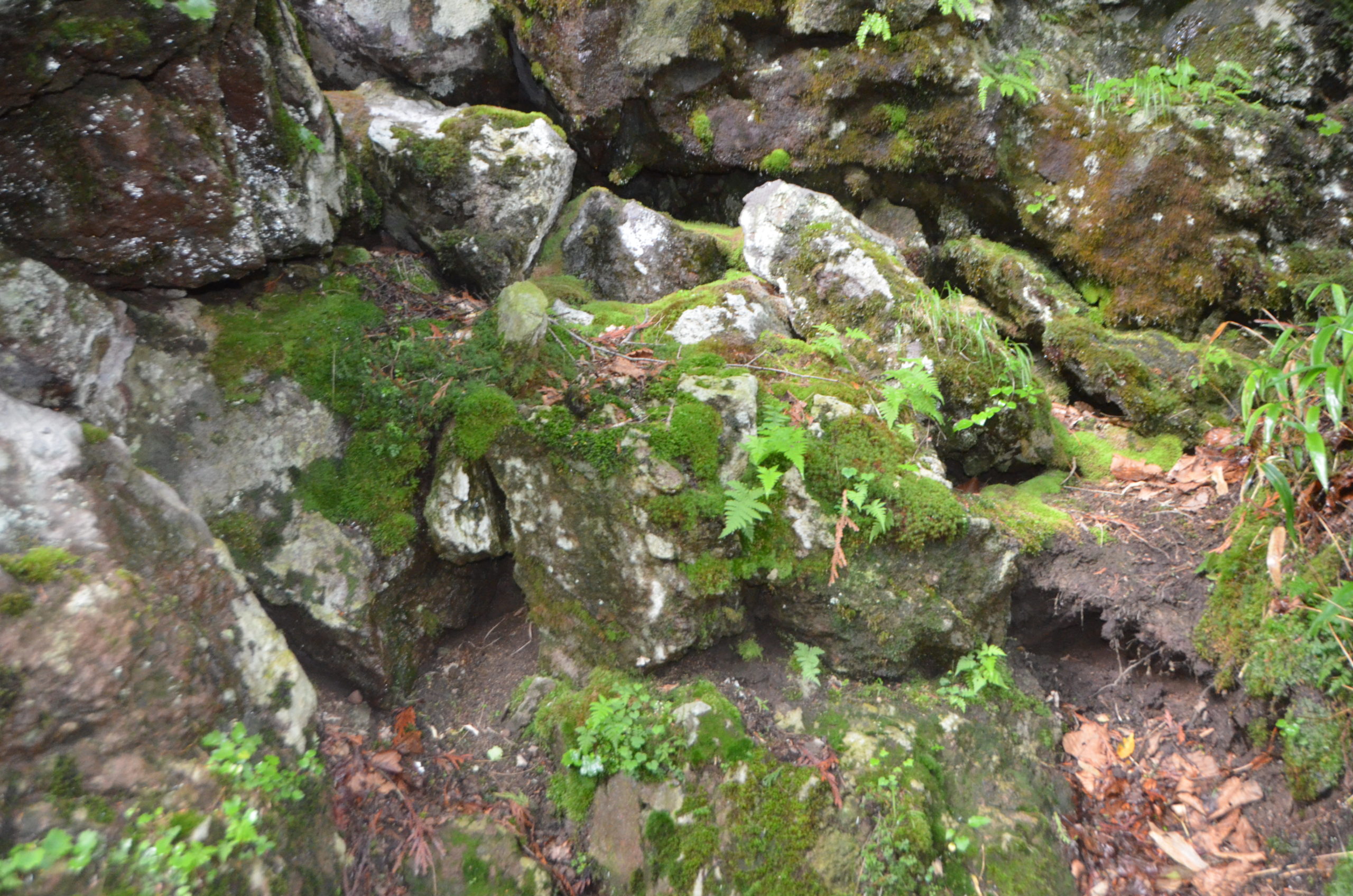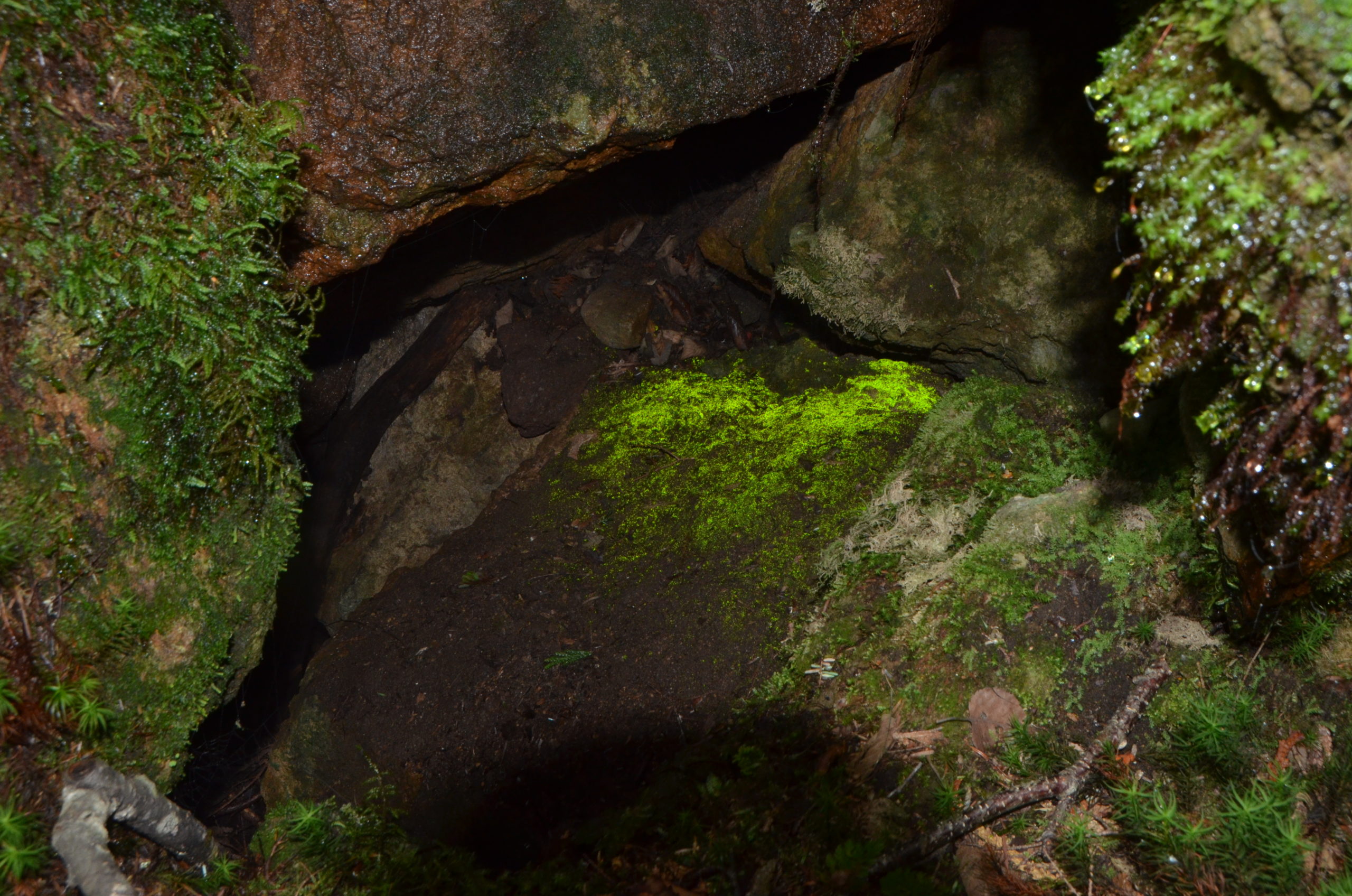 岩の間を覗くと、冷気が出ていなくても緑色に輝くヒカリゴケが生育していることも。前に立ってみるなり覗いてみるなりすると何かいいことがあるかもしれませんよ。