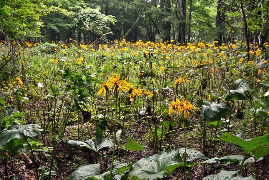 ちなみに、マルバダケブキがお花畑~~になっているのは、このあたりに多く生息するニホンジカが、この植物を嫌がって食べないためです。食べても葉や茎などに含まれる物質を分解できないのだとか。