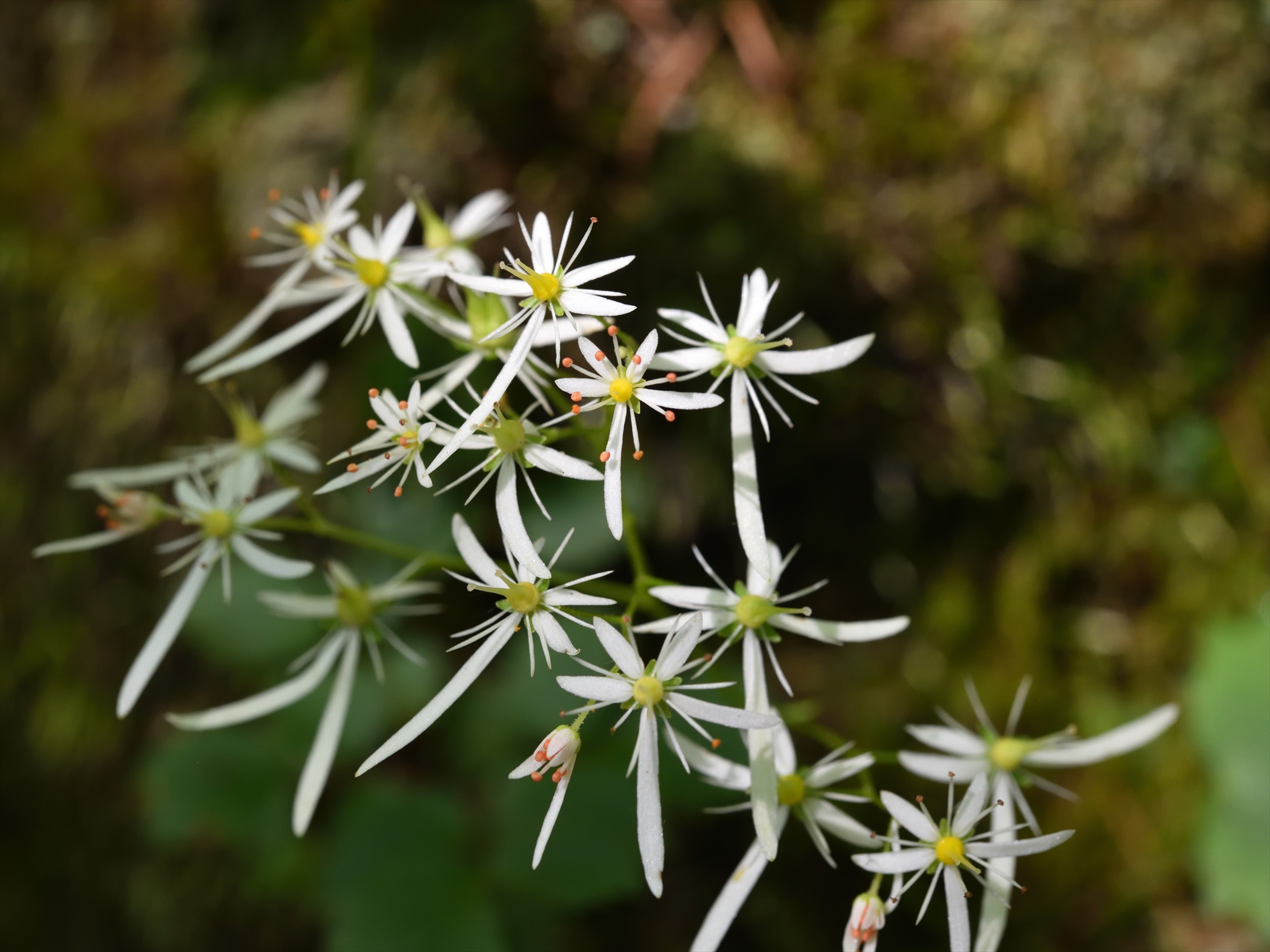 山地の、湿った岩場という限られた環境にしか生育しない、ちょっとレアな植物。出会えると嬉しくなる花のひとつです。