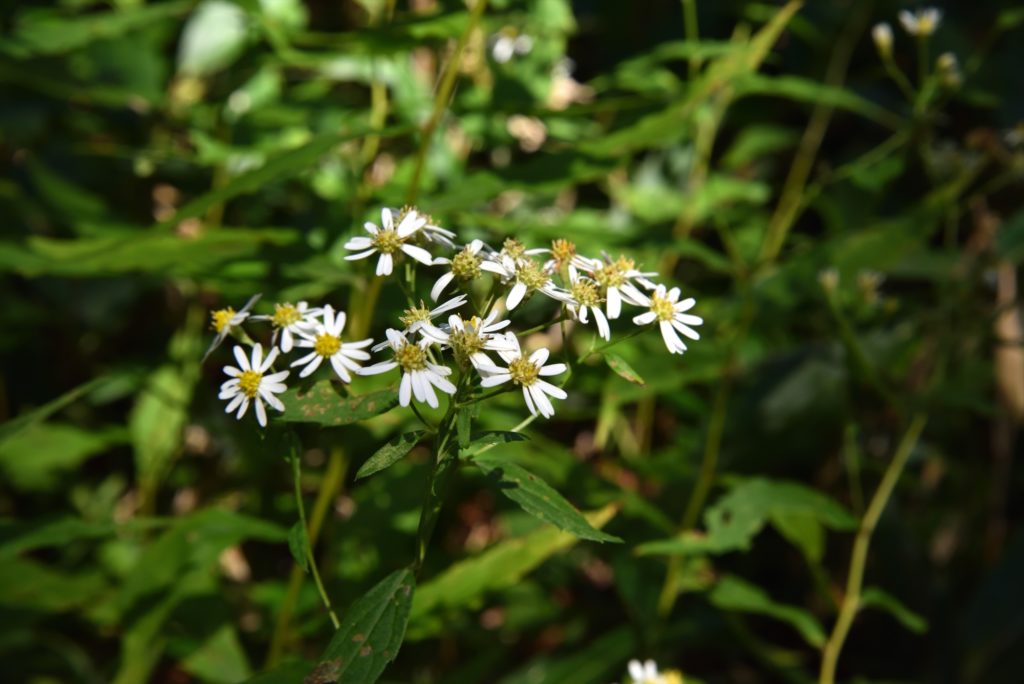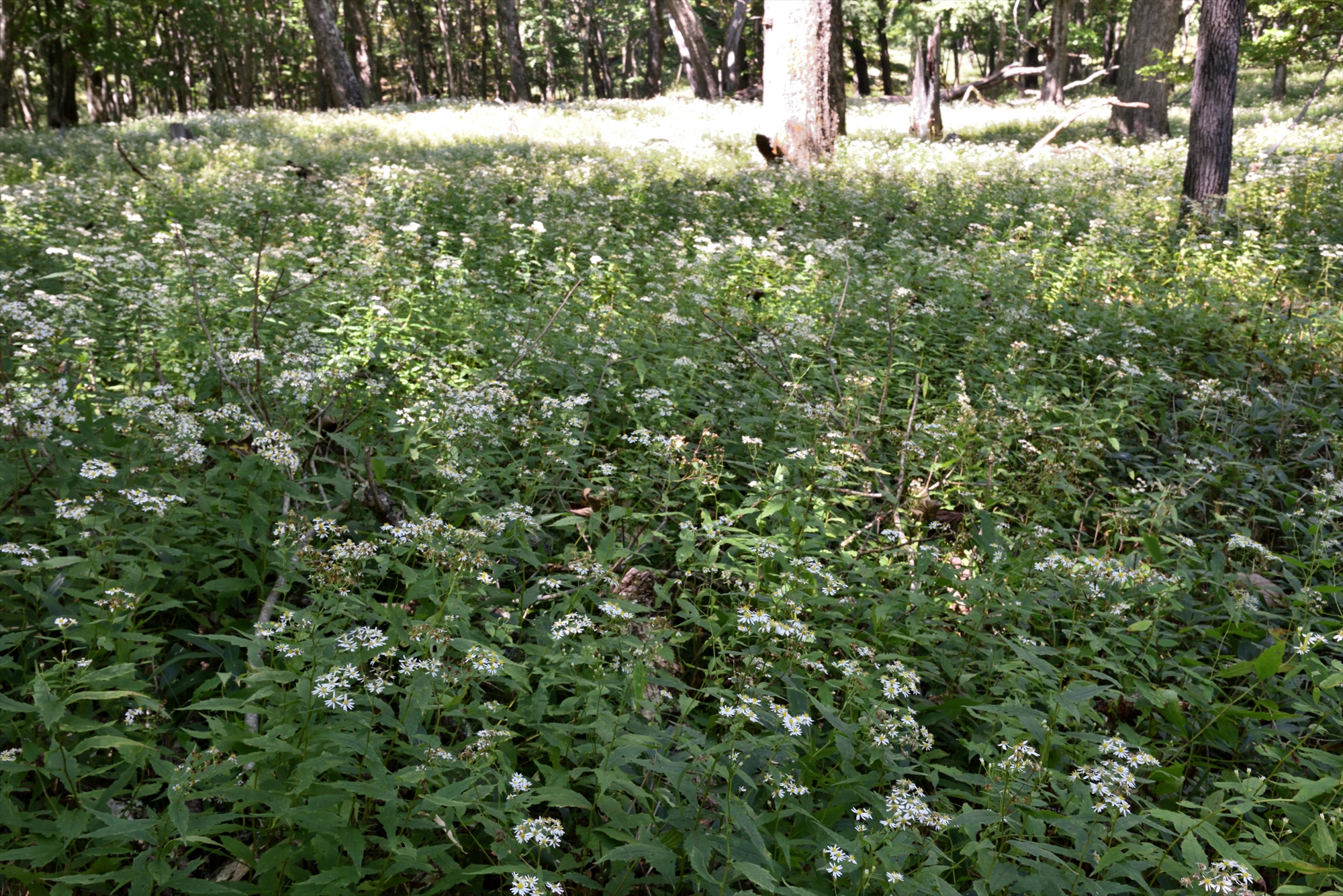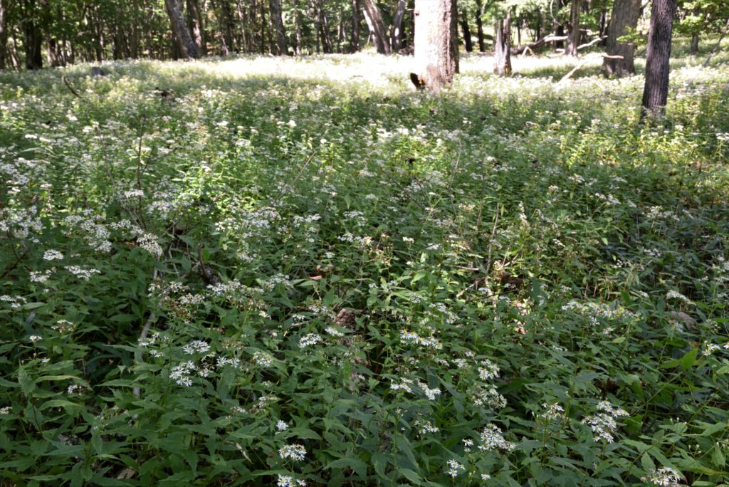 シロヨメナは、草食のニホンジカが嫌う植物のひとつ。シロヨメナばかり、ということは、ほかの植物をシカが食べ尽くしてしまったということでもあります。シカの頭数が多すぎて植生が崩れてしまっているのが分かってしまう景色です。