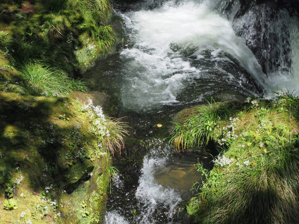 低公害バスで小田代原へ向かう途中、石楠花橋の上を通って湯川を渡ります。橋の下を覗き込むと・・・
