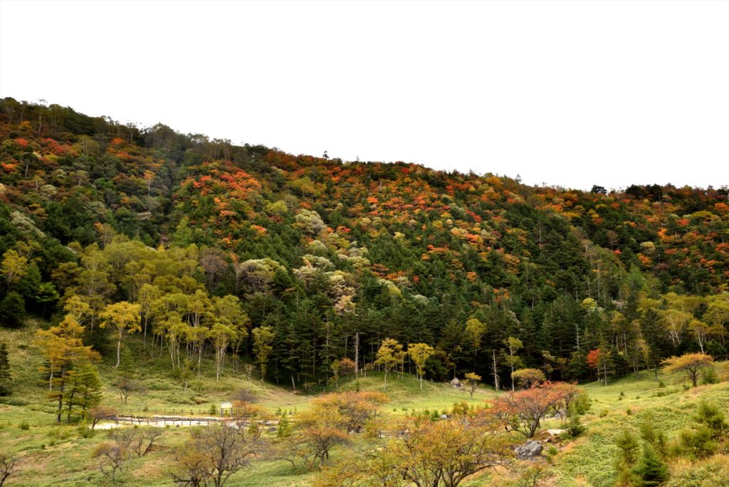 湯ノ湖あたりもかなり色づきが進んできています。(昨日のブログ参照)