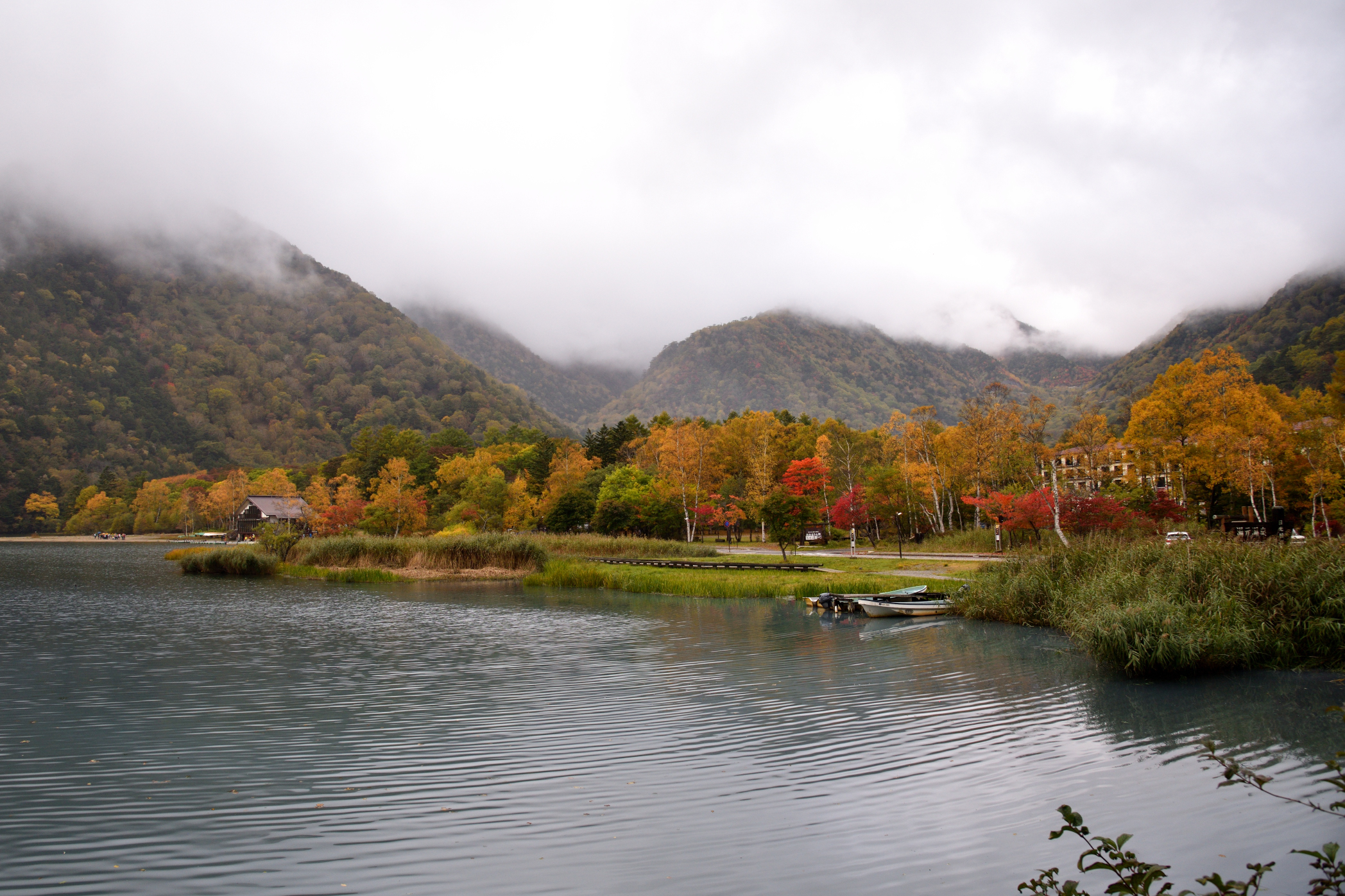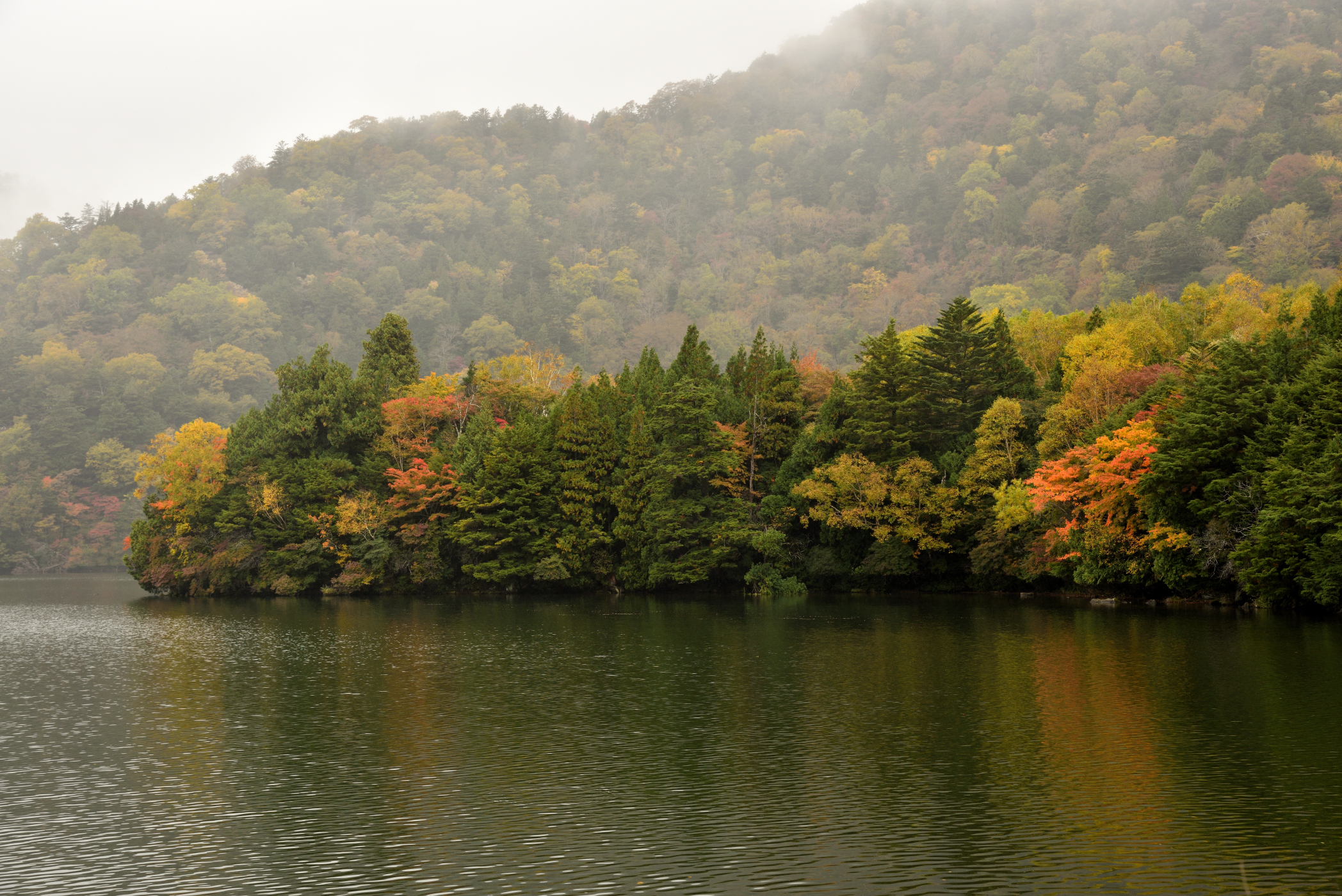 周囲に見える山の頂上では赤が目立ちますが、全体としてはまだこれから。