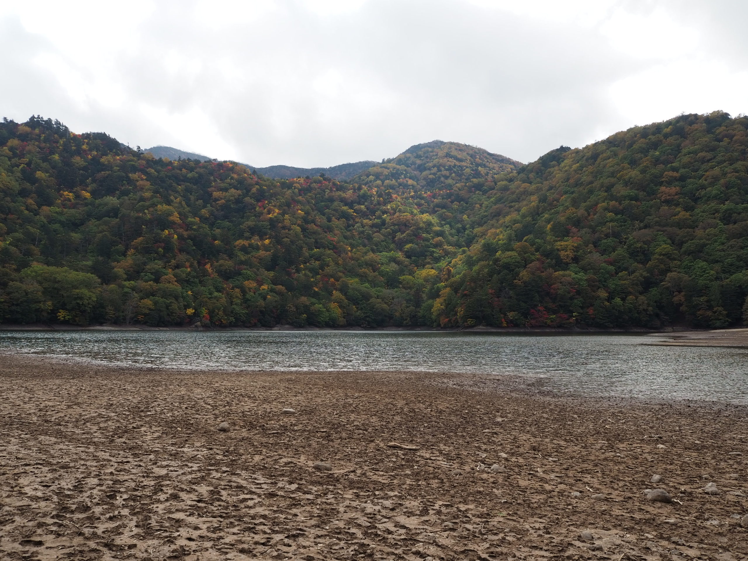 周囲の山肌を見渡すと下の方も色付いており、見頃始まりといった状況でした。赤・黄・橙・緑と山肌に何色も見え、その光景は大量のブロッコリーの中に他の色とりどりの野菜を盛り付けたサラダのよう、色付きの様子を見るとピークまではもう少しという様子だったのでこの西ノ湖サラダの盛り付けがどう変わるか、楽しみです。