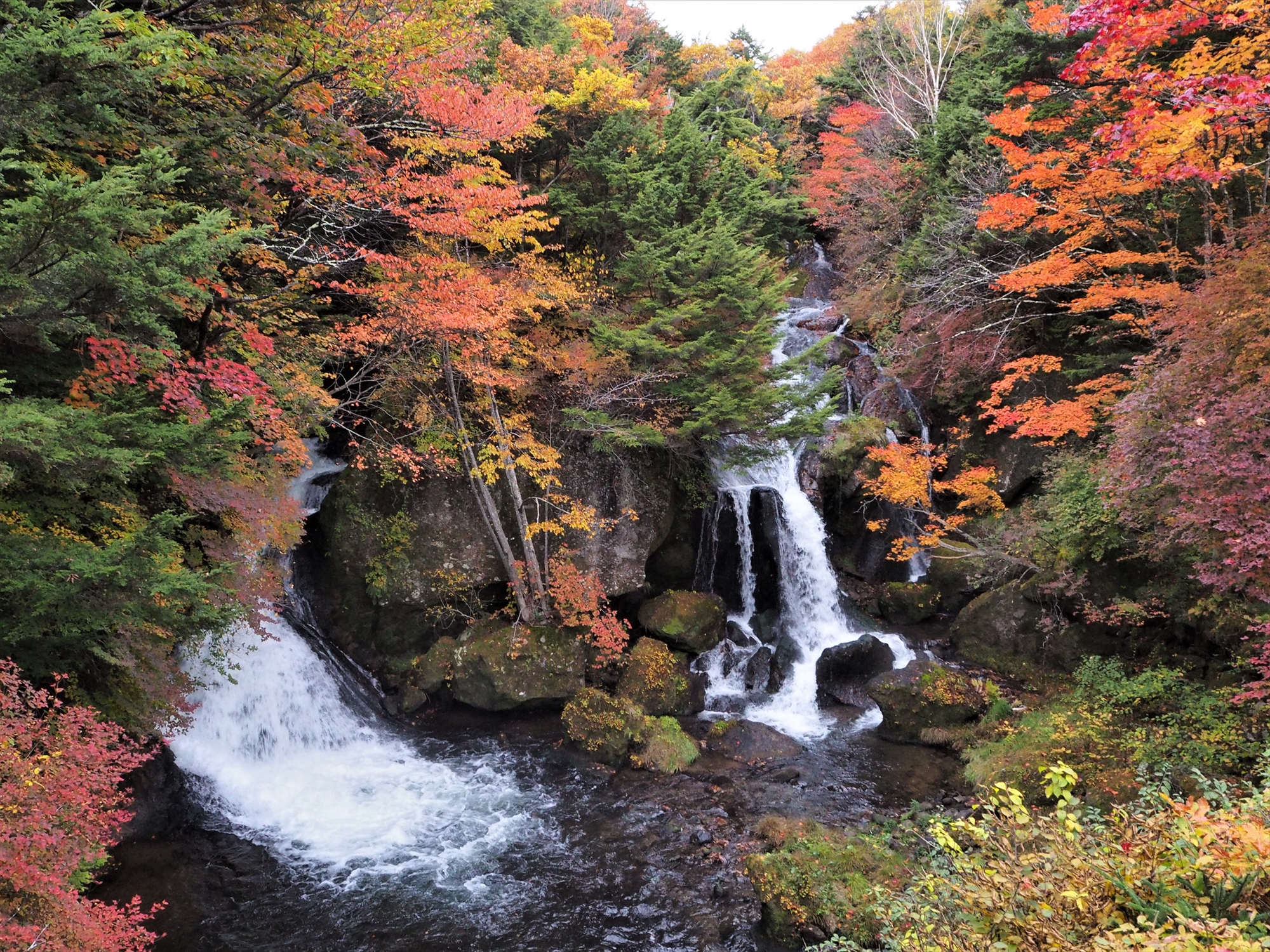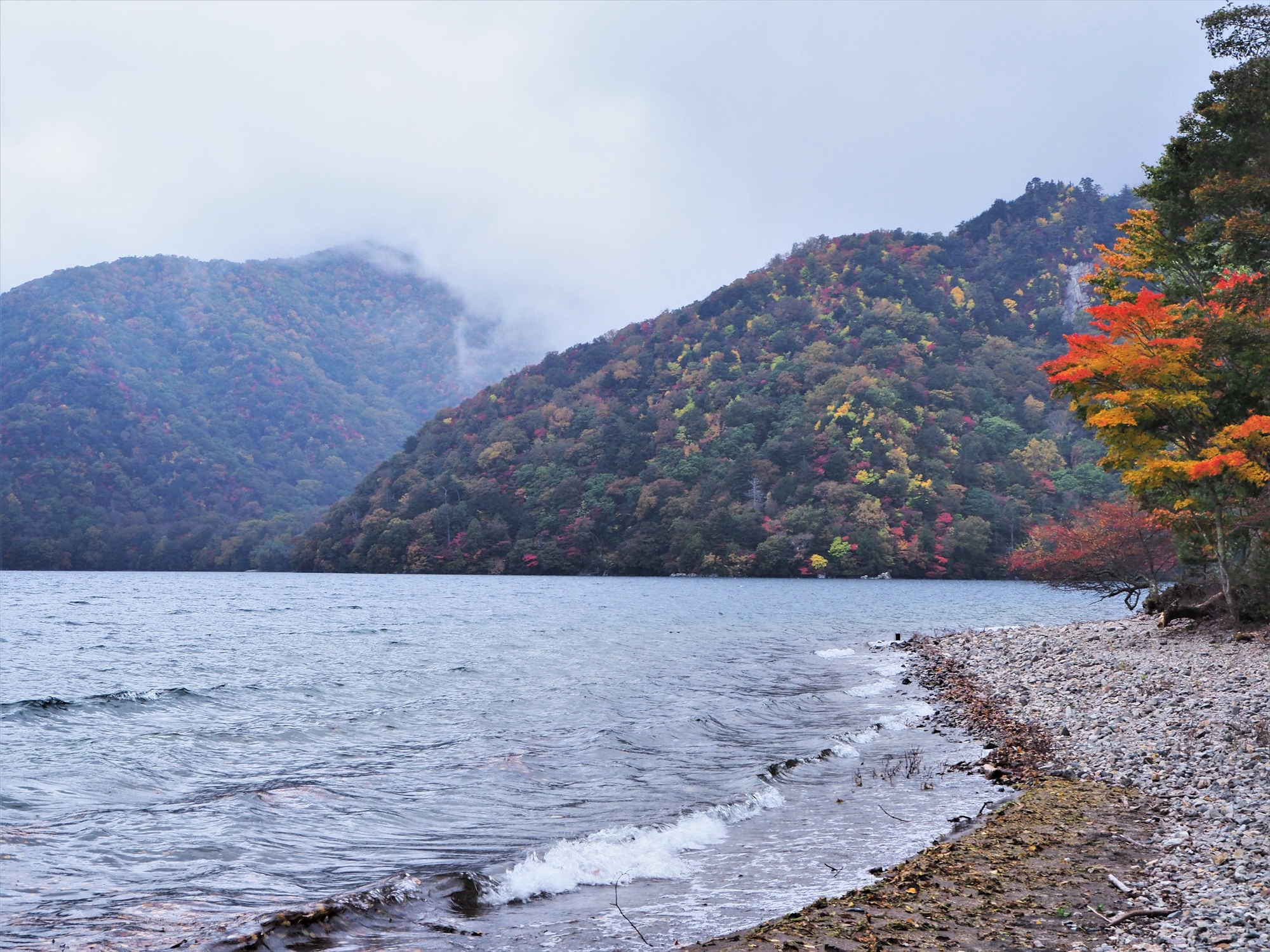 竜頭滝(例年山の上と同じくらい早い、紅葉序盤)が見頃なら中禅寺湖周辺(奥日光では終盤)はまだまだでしょ、と構えていると、いい時期を見逃しそう。
