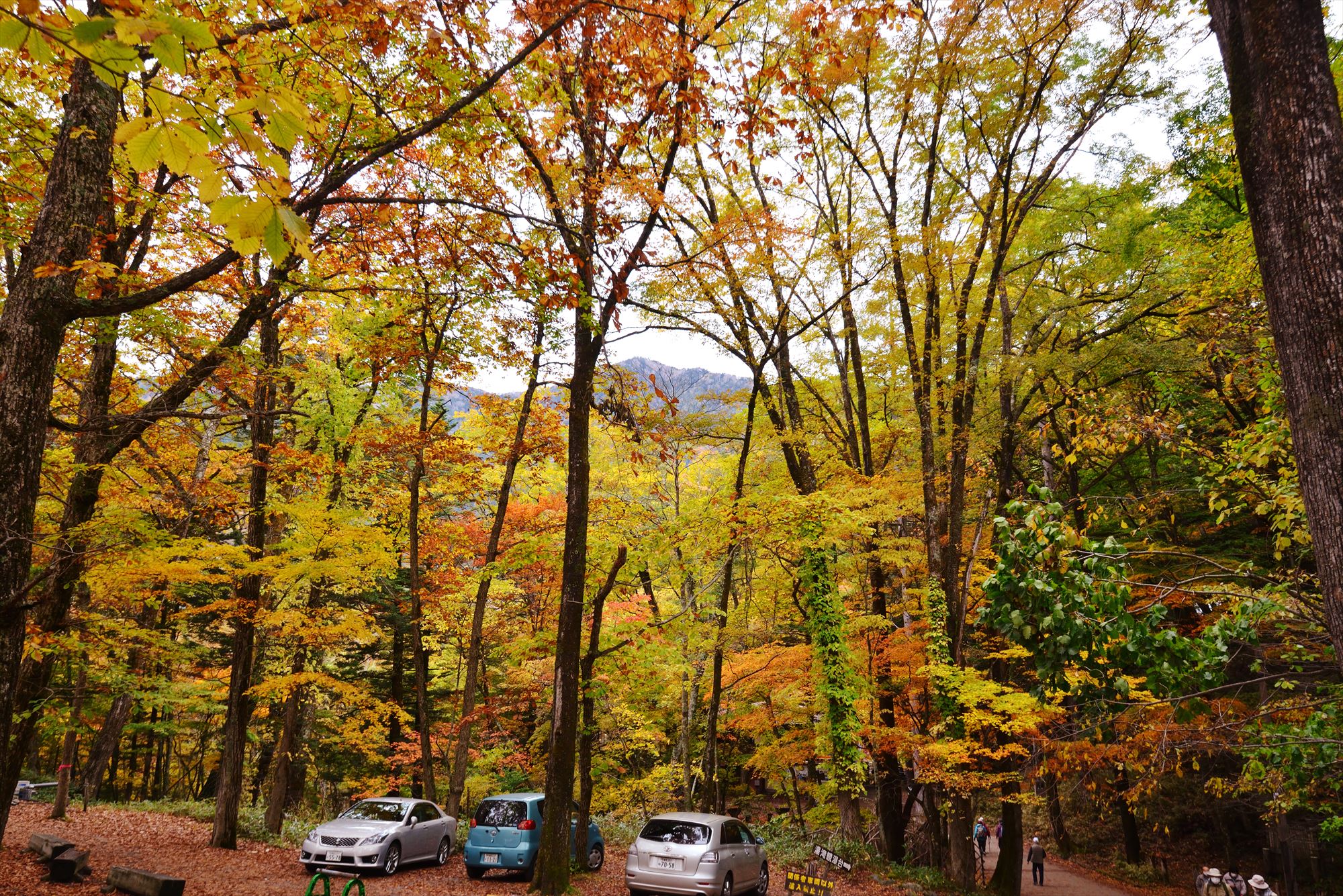 駐車場のまわりもきれいに色づいています