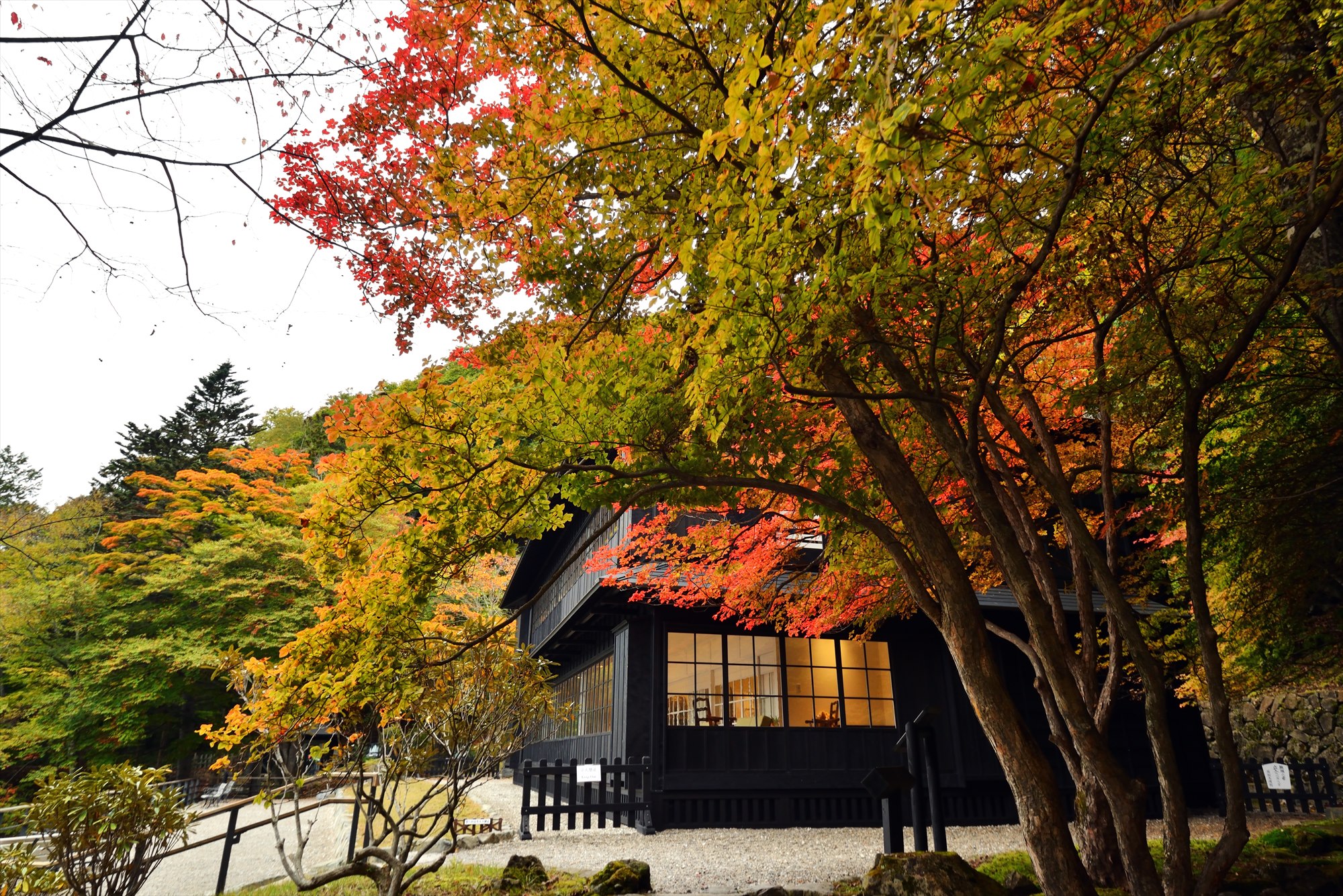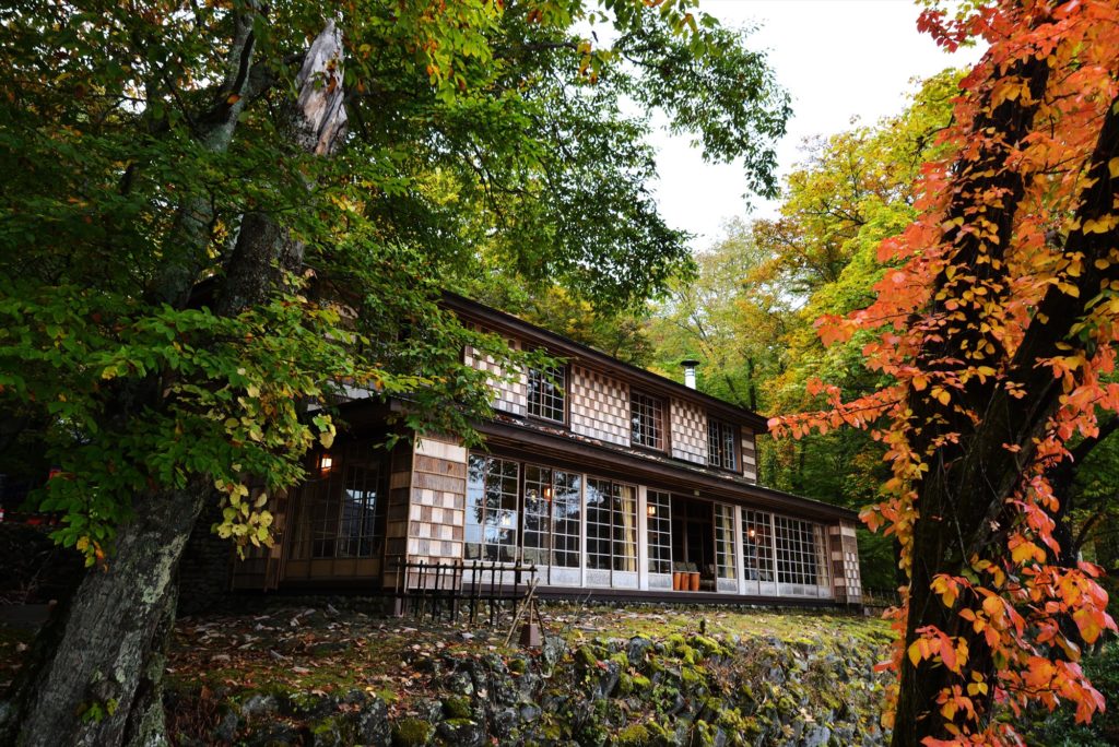 英国大使館別荘記念公園を建てたアーネスト・サトウ自慢の庭からも、紅葉越しの建物が楽しめます