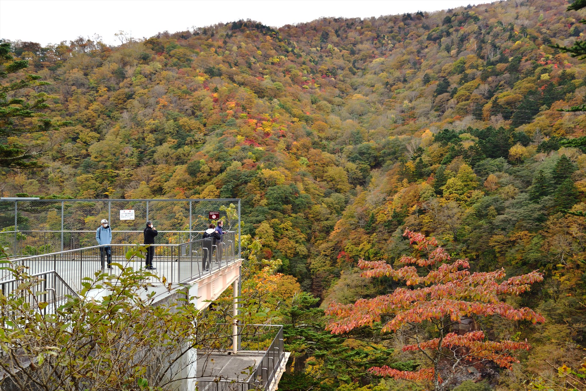 振り返った明智平方向の眺めもすごい色づきです!