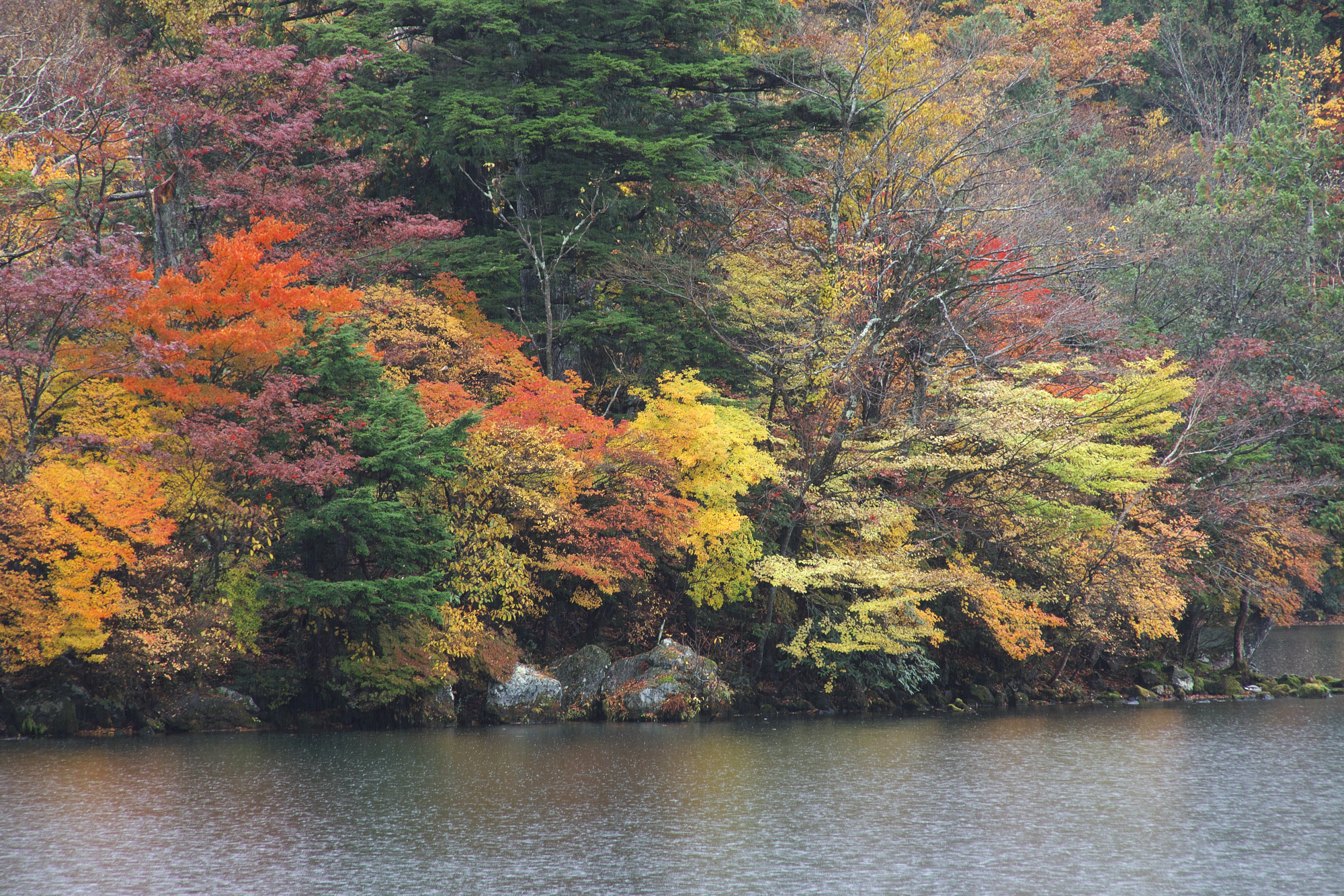周囲の山肌+水際の紅葉はいまだいい感じ。