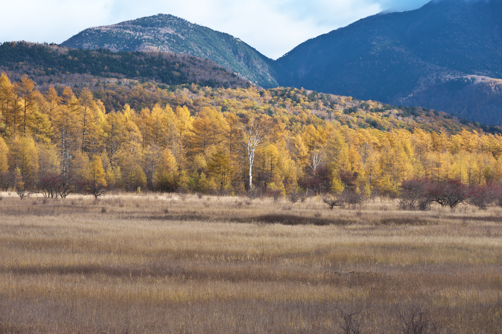 その代わりカラマツの黄葉が以前より進み、緑色はまったく見られず綺麗な黄色になっています。