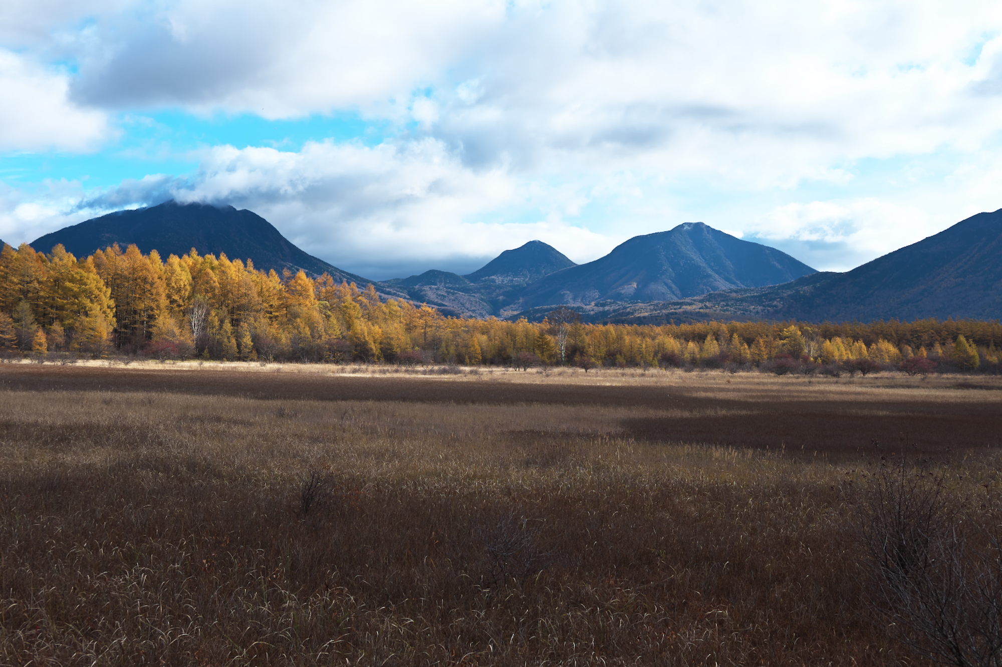 まず小田代原ですが、見ての通り草紅葉は茶色く完全に終わり。