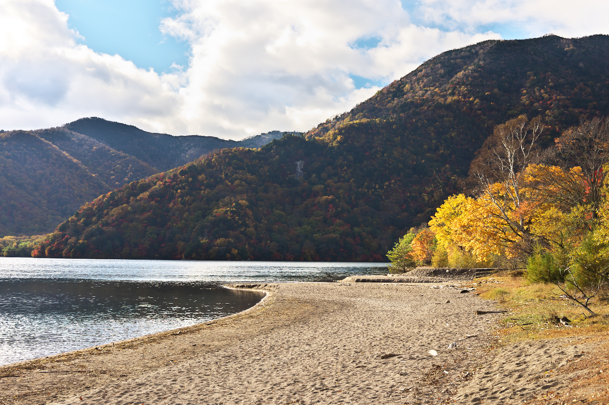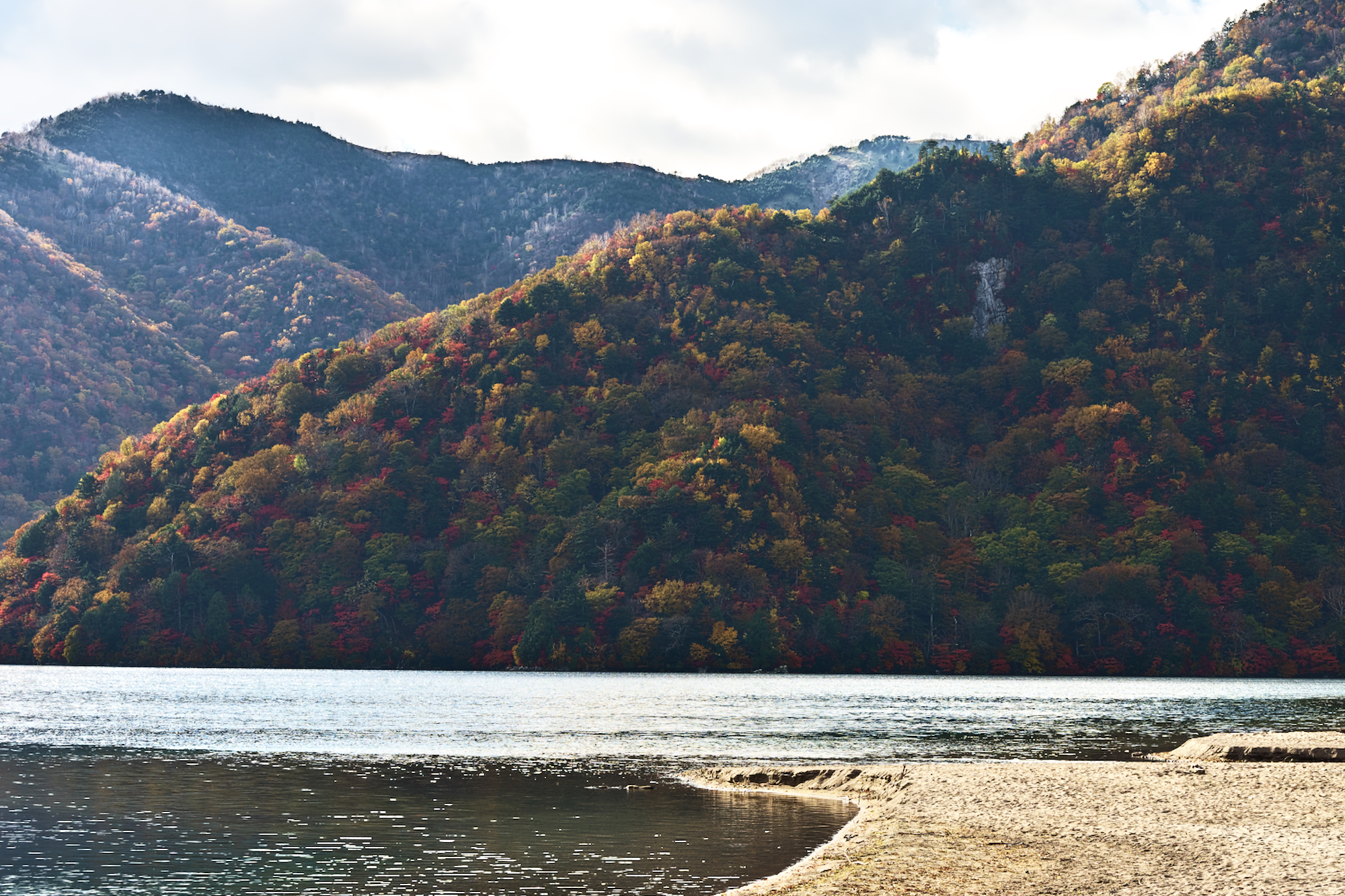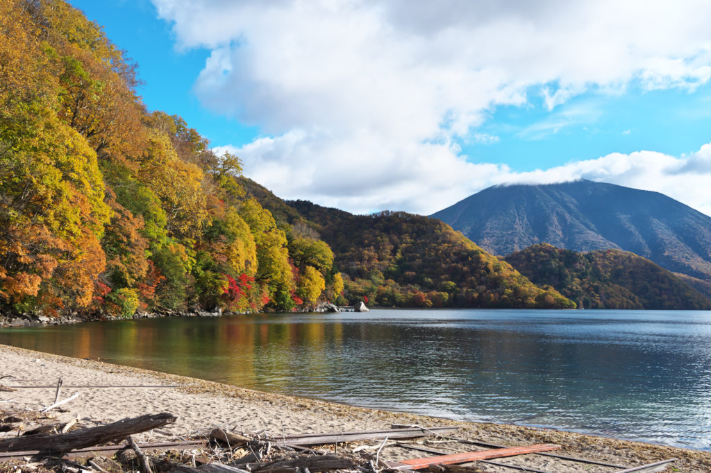 さて次は千手ヶ浜です。中禅寺湖の浜と男体山だけでも綺麗な場所ですが、今は紅葉も見頃!