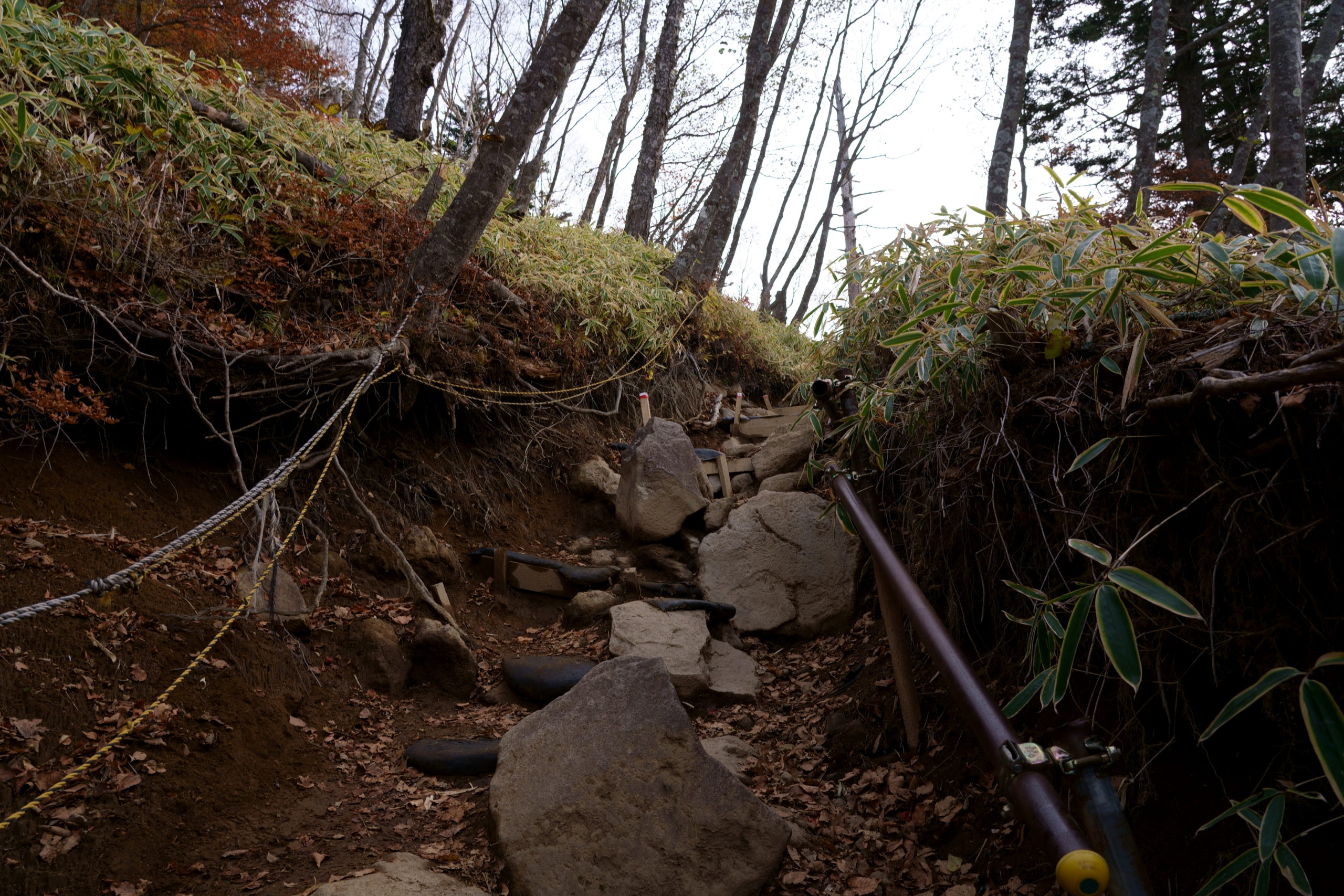 このあたりでは紅葉も減り、5、6合目付近ではすっかり葉は落ちている様子。