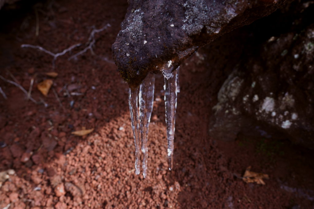 7合目付近からは霜や氷柱が見られ、ここから気温がぐっと下がってきていることが分かります。