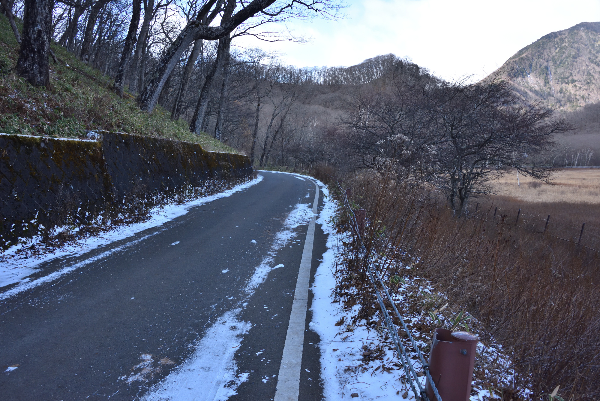 ただ、赤沼あたりでは粉雪やふっかけが続くことも多く、道はこんな感じ。晴れてはいましたが2℃までしか上がらず、日陰はとても寒かったです。