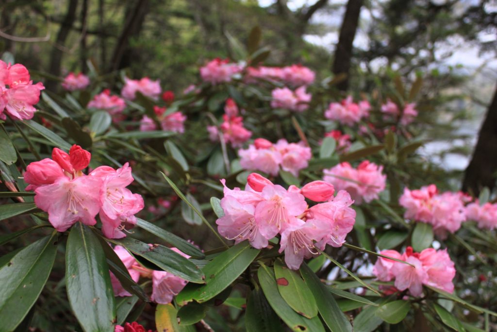 奥日光各地でご覧いただけるアズマシャクナゲですが、湯ノ湖周辺や中禅寺湖南岸・千手ヶ浜寄りの一画には群生地があり、シーズンには多くの人で賑わう人気スポットでもあります。