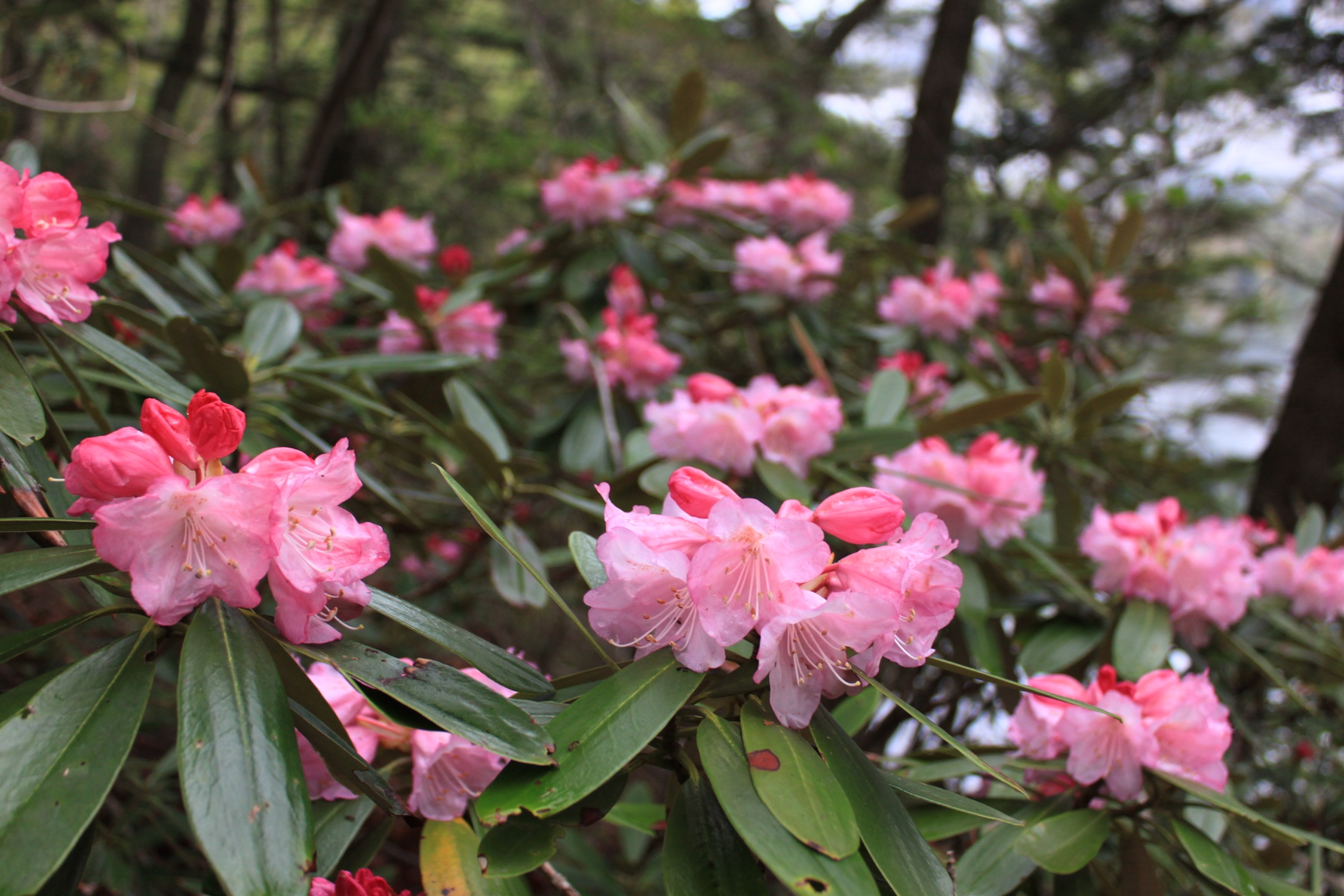 そのほか、中禅寺湖南岸からさらに南には黒檜岳への登山道があり、その登山道沿いにもアズマシャクナゲの群生地があるとのこと。