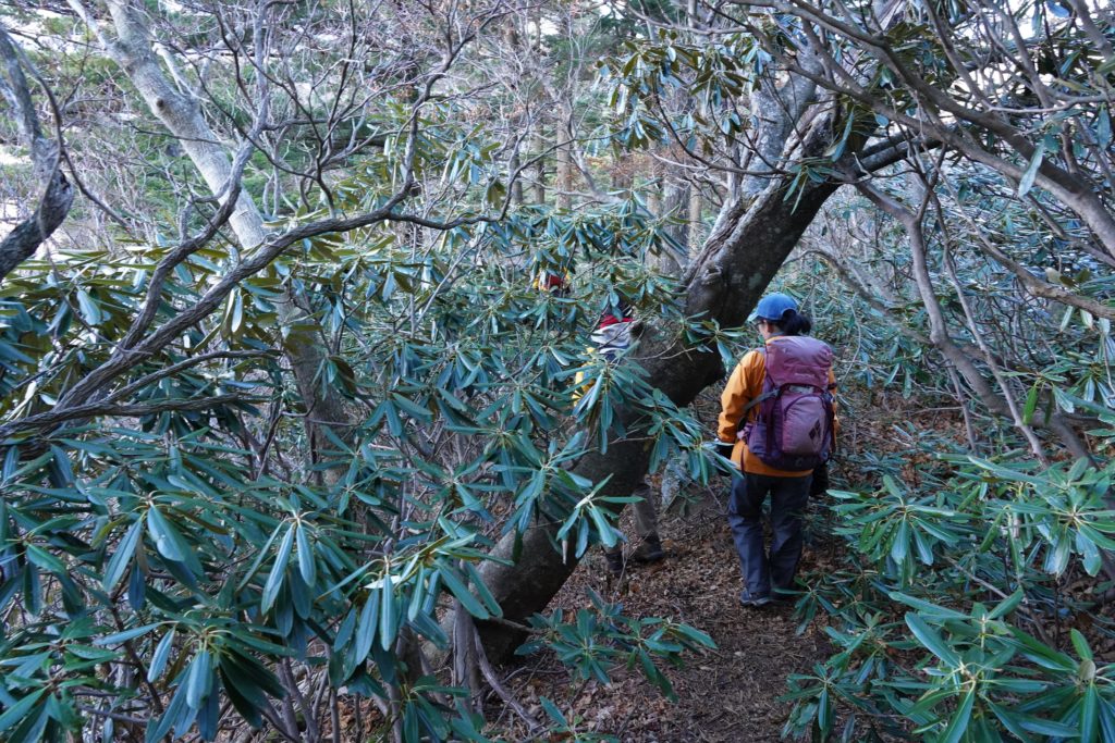 登山道の左右いっぱいに石楠花の木が広がり、まるで石楠花の森の中を潜っているかのよう。