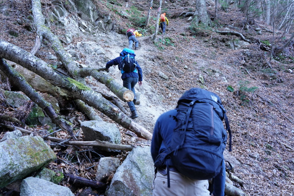 問題はその道中。少し登っただけでも危険な箇所がいくつも現れます。