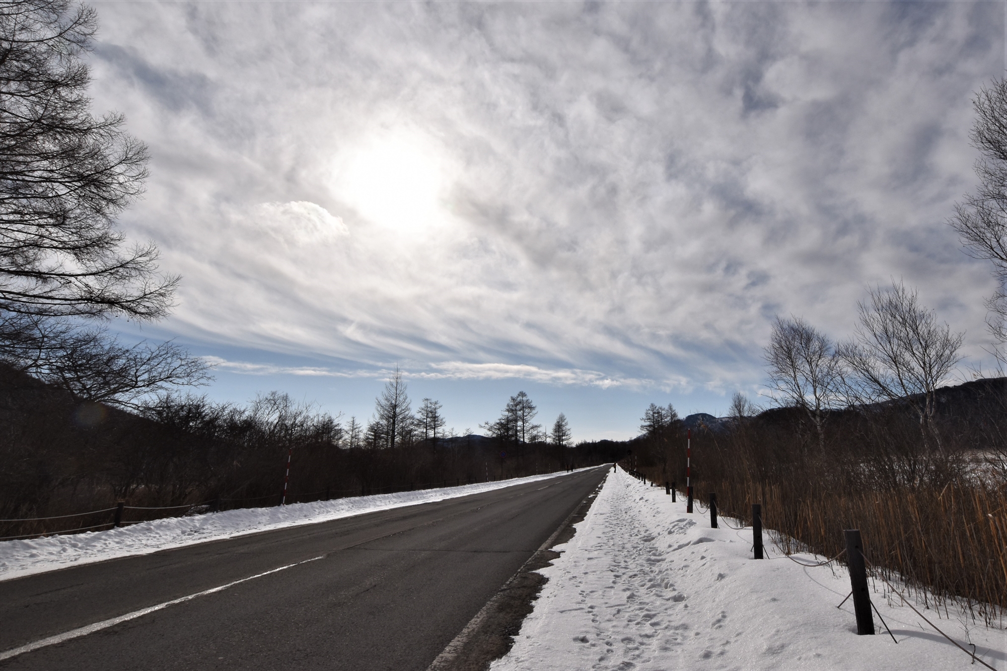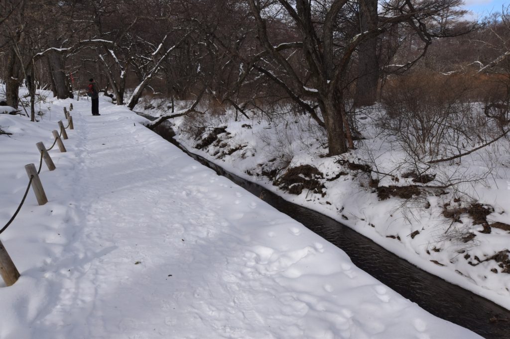 しかし、道の脇沿いはまだ踏み固まっていない雪が積もっており、足を踏み入れてしまうと15㎝ほど埋まってしまうので注意が必要です。