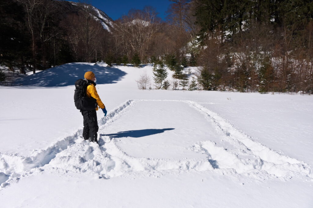 そんな雪の中をかき分けるようにつぼ足で進みます。