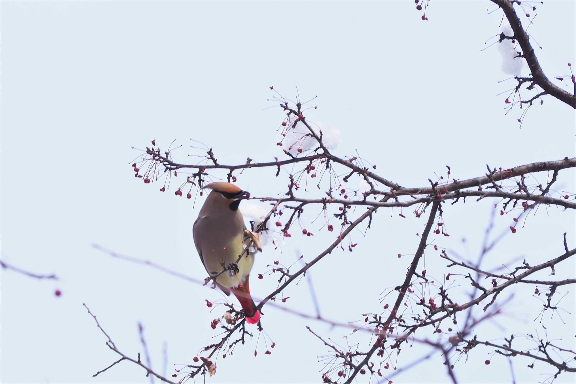 レンジャクにも2種類あって、尾羽の先が赤ければヒレンジャク、黄色であればキレンジャク。そんな基礎知識だけは頭に入っていましたが、近くでじっくり見られたのは今回が初めてでした。