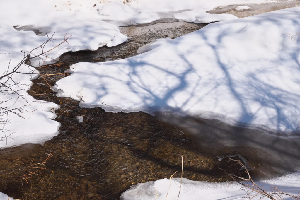 光徳入口付近では凍った逆川を見ることもできますよ。