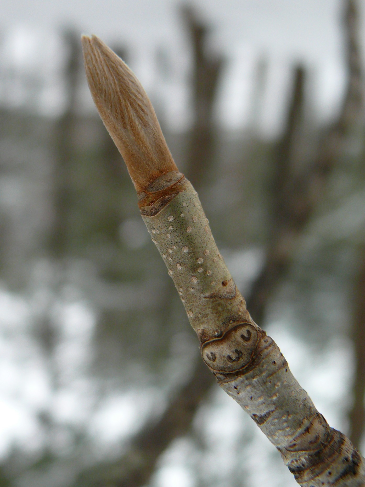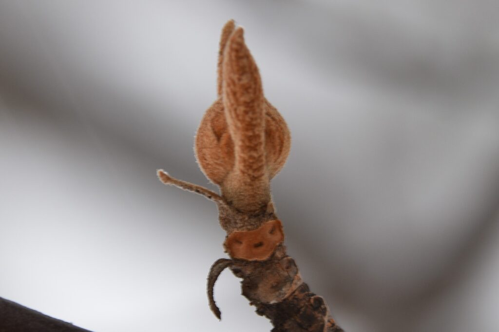 立派なリーゼントのような冬芽にちょい悪顔な葉痕がなんとも可愛らしい!