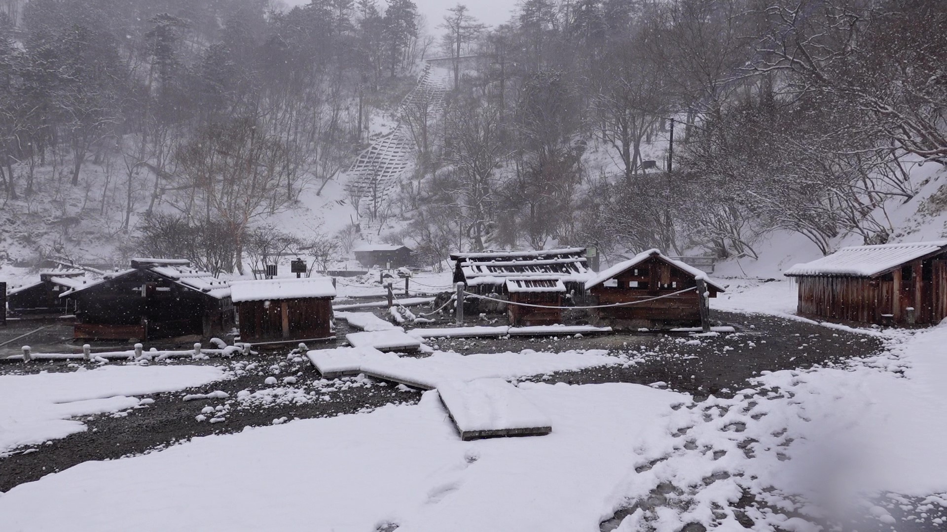 日光湯元温泉の泉源でもあり、あちこちから熱い温泉が湧いています。真冬でも湯気が立ち上り、何とも不思議な雰囲気です。
