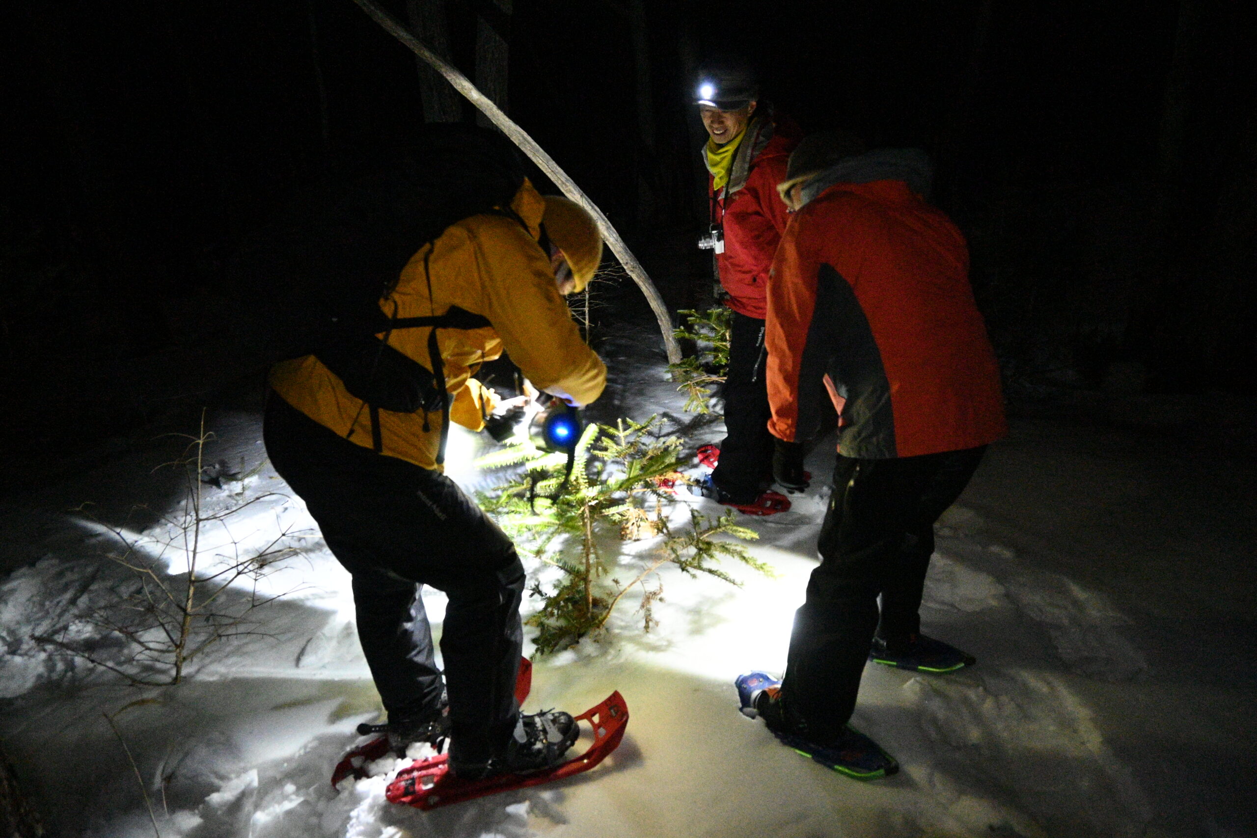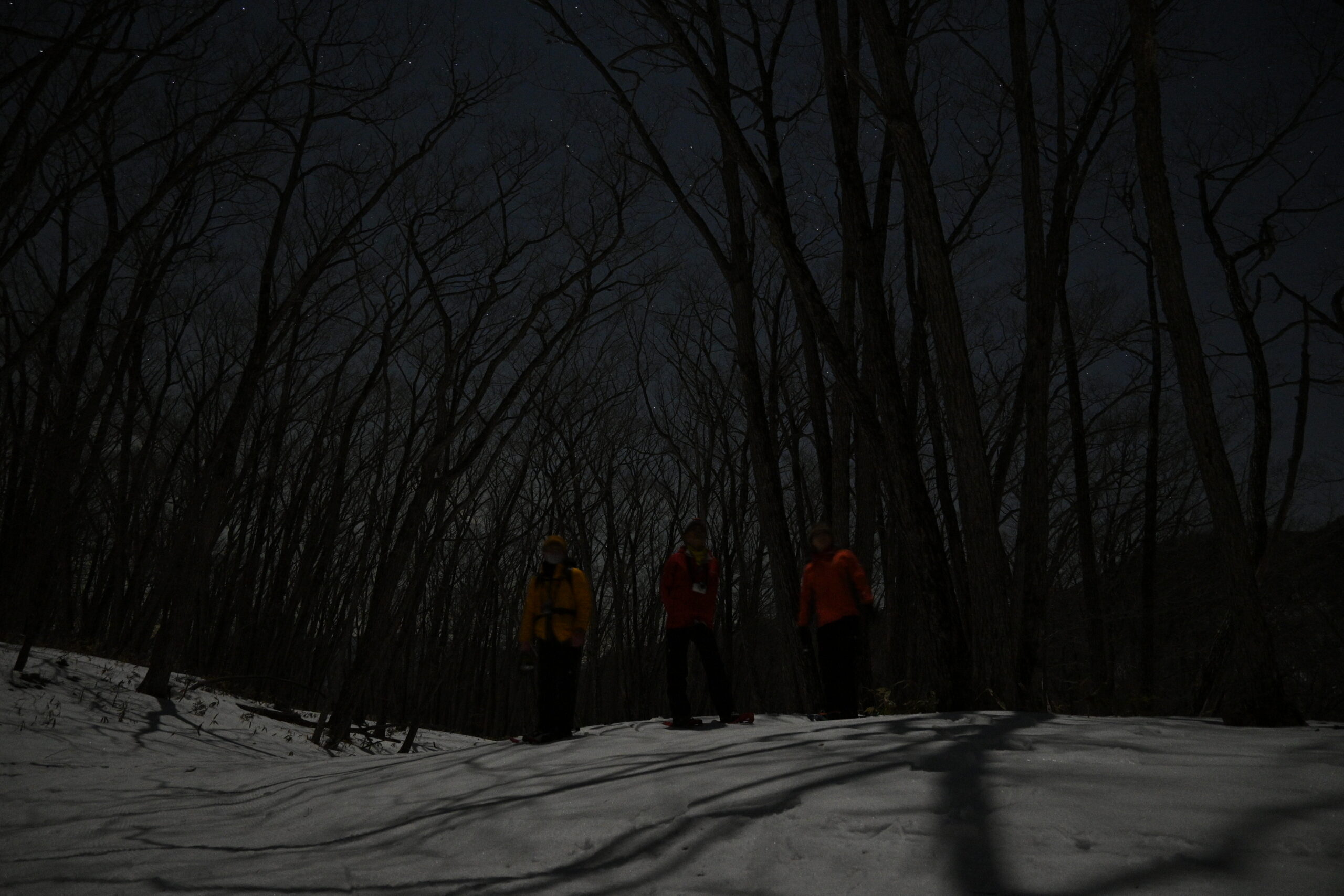 光徳周辺の森にて雪上ナイトハイキングを開催いたしました。去年は雪が少なく、残念ながら中止としましたが、今年は1,2月に計3回、無事に開催することができました。