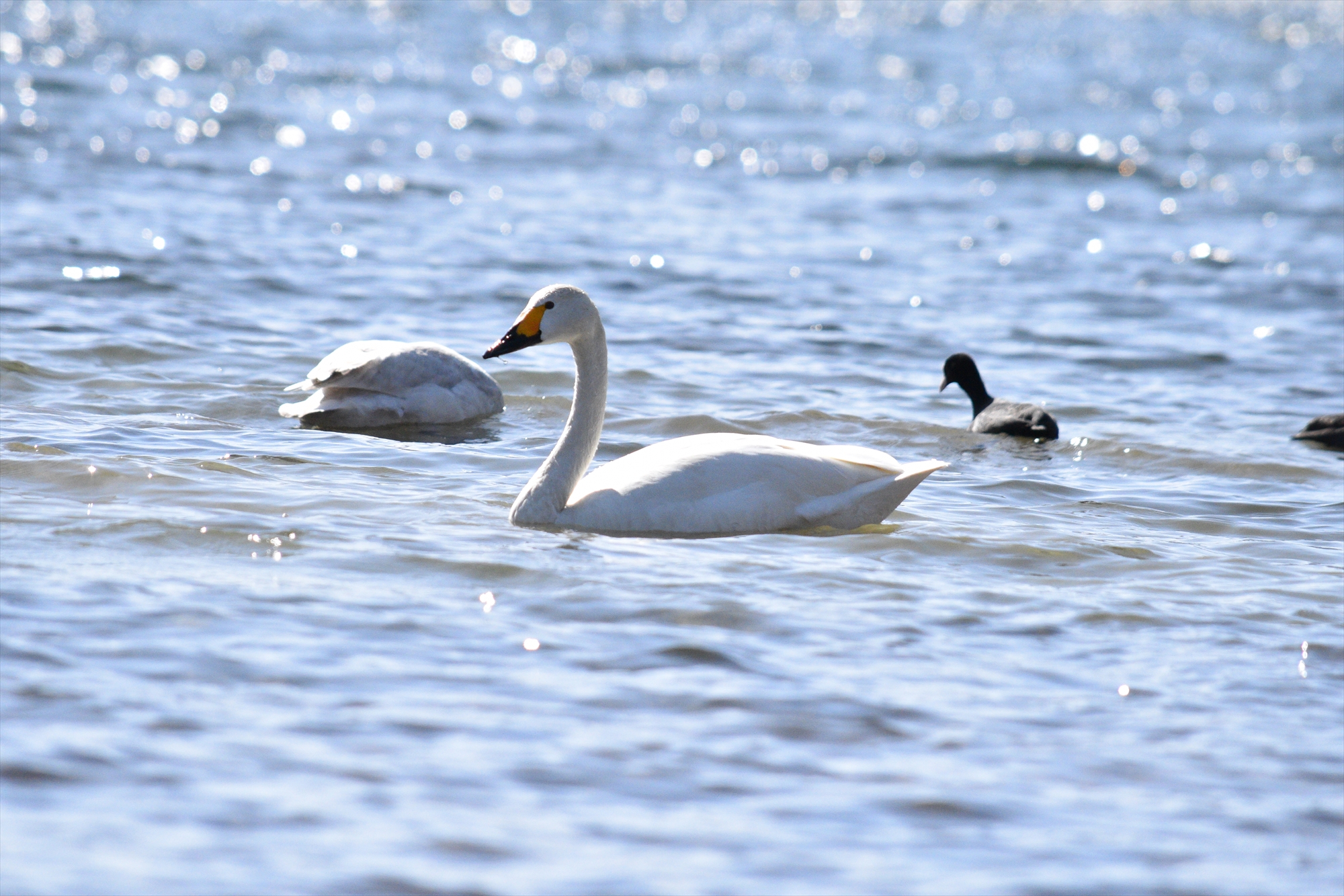 いました……!嘴の黄色の模様から、コハクチョウだとわかります。