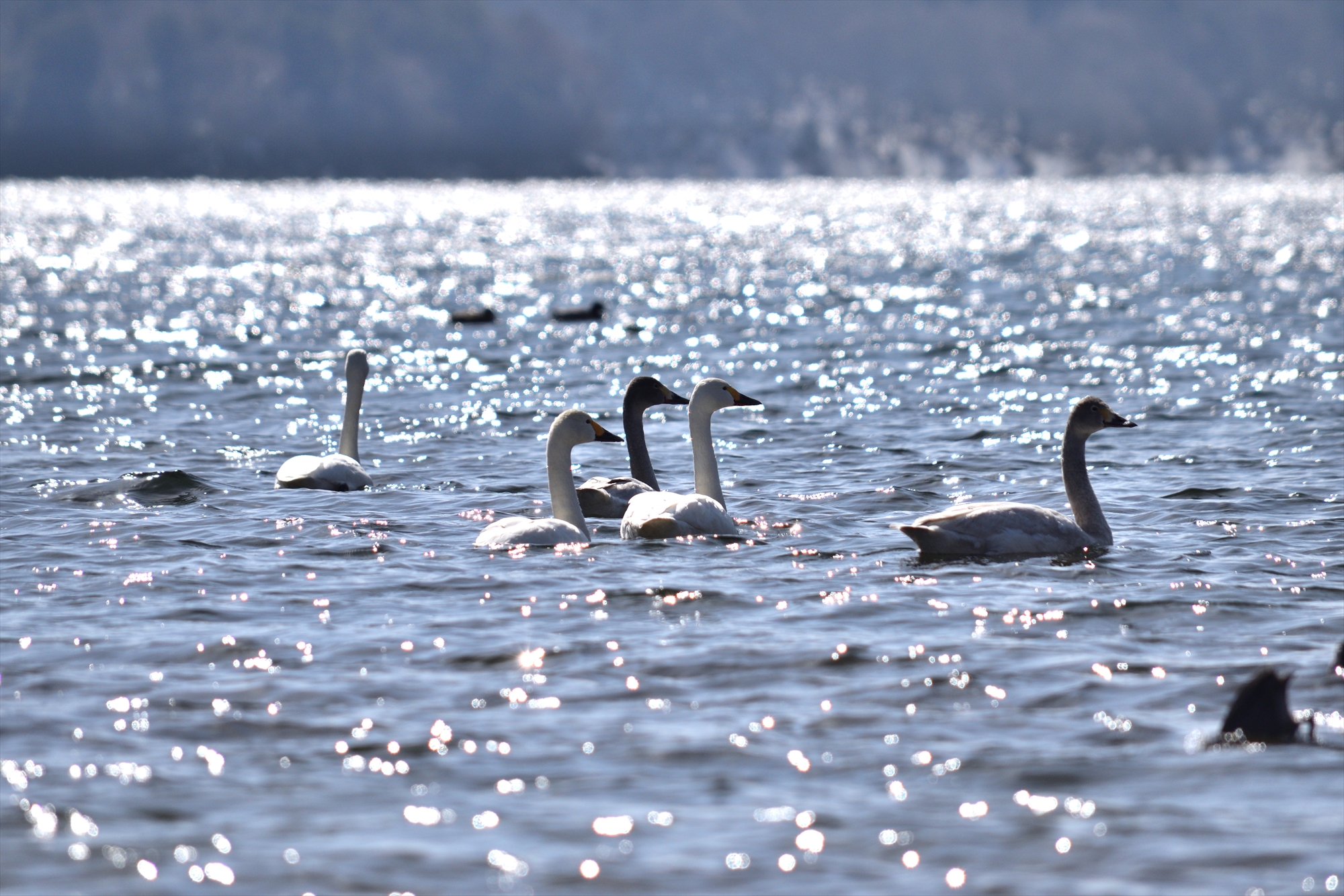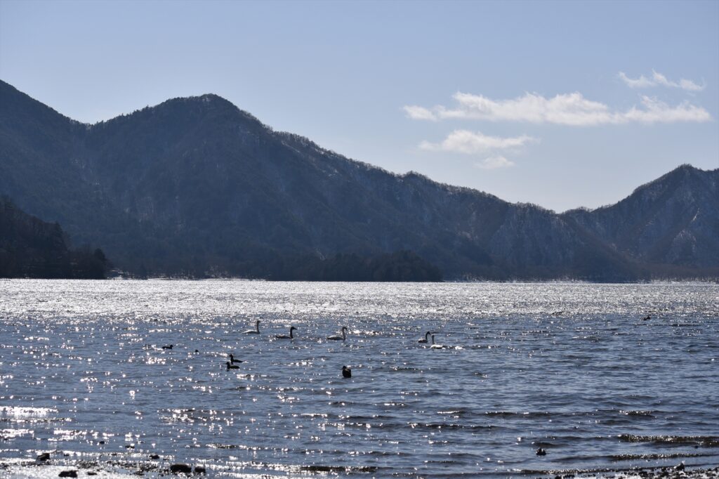 慣れ親しんだつもりの中禅寺湖に、慣れ親しんでいないハクチョウがいる景色、何だか不思議な光景でした。(山)